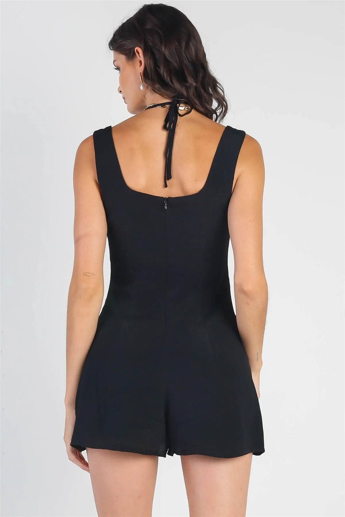 Black Self-Tie Detail Sleeveless Romper /3-2-1