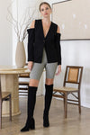 Black Textured Cold Shoulder Contrast Button Blazer /2-2-1