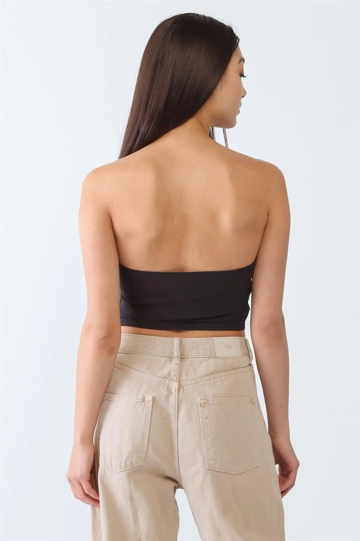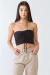 Black Textured Strapless Ruched Crop Top /3-2-1