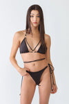Black Triangle Top With O-Ring Detail & Self-Tie Thong Swim Wear /3-2-1