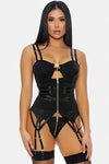 Black Velours Gold Buckle Strappy Two Piece Lingerie /2-2-2
