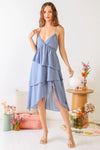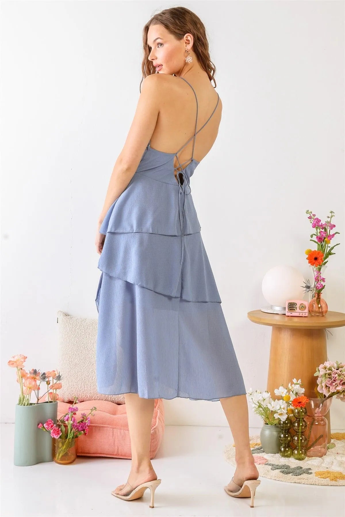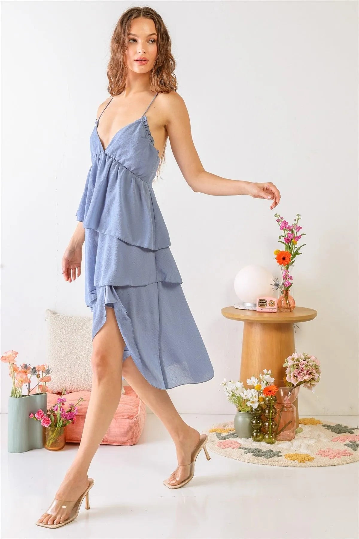 Blue Textured Ruffle V-Neck Sleeveless Strappy Layered Hem Mini Dress /3-2-1