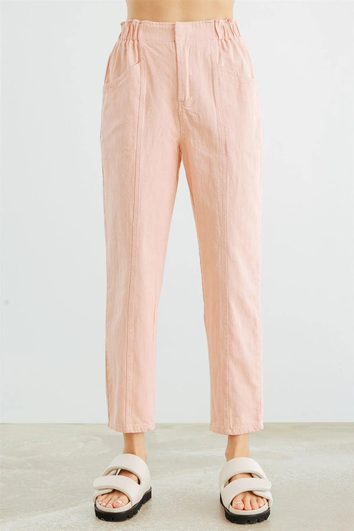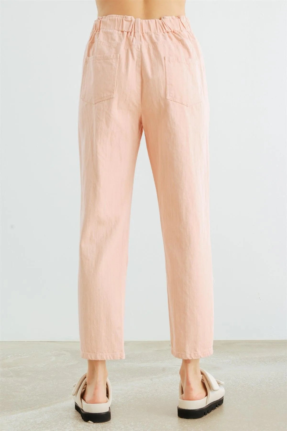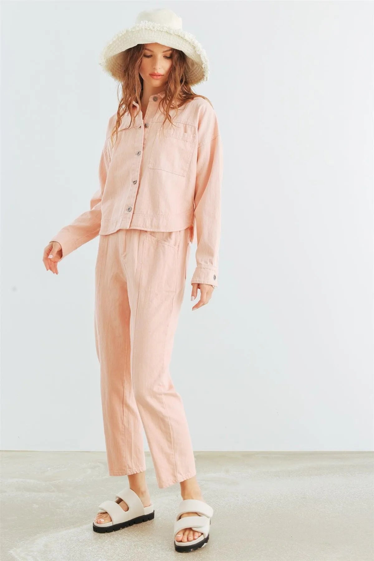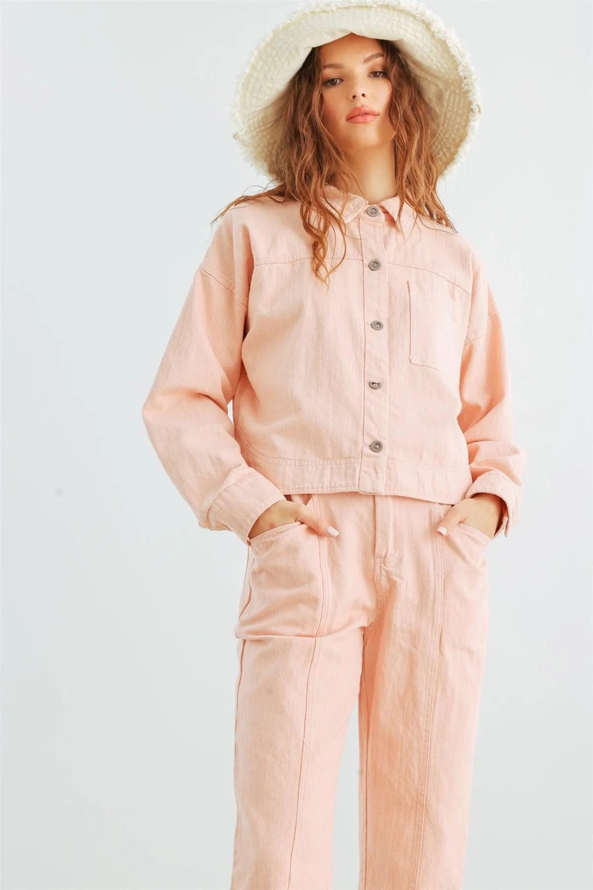 Blush Denim Cotton Button-Up Collared Neck Jacket & High Waist Pants Set /2-2-2