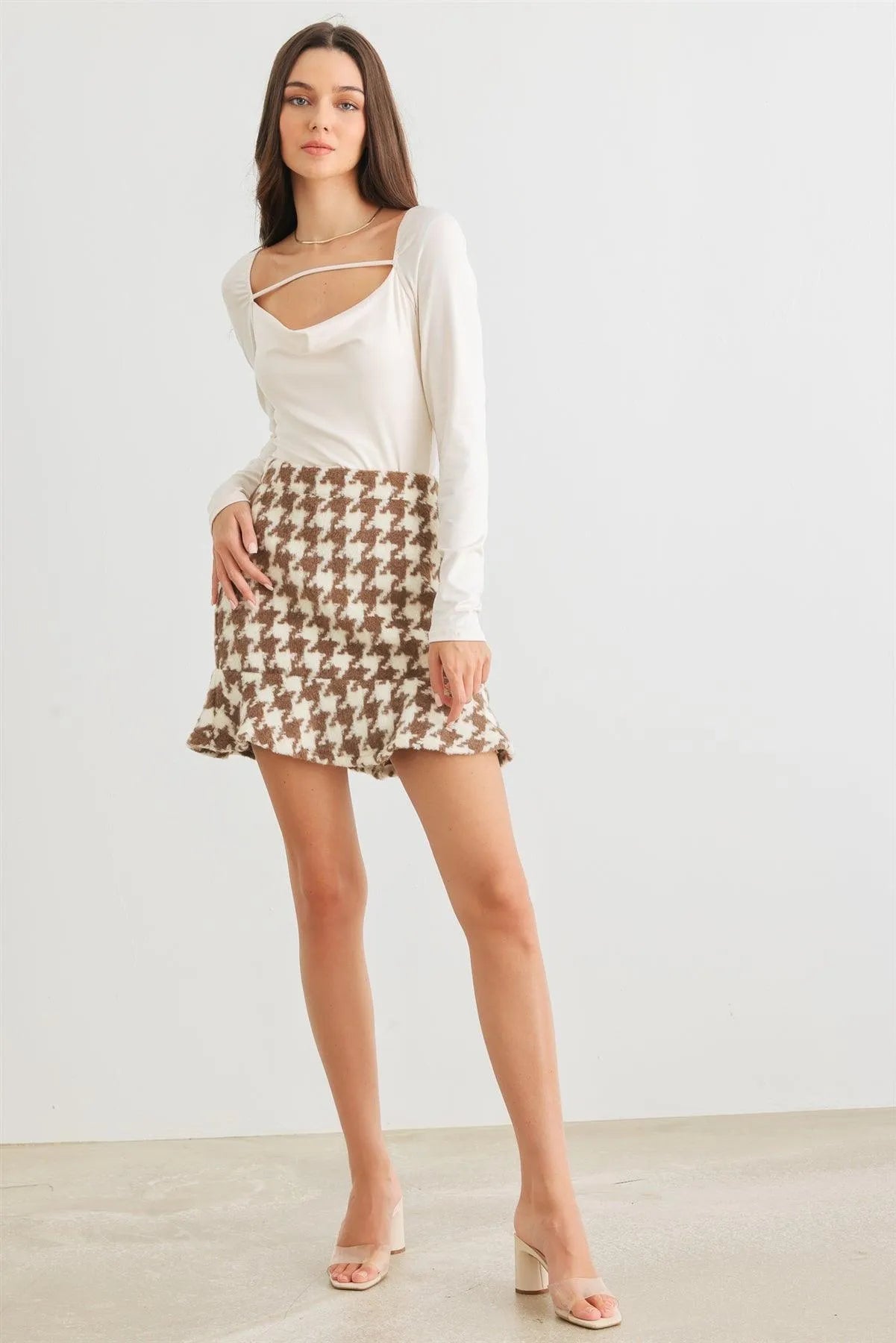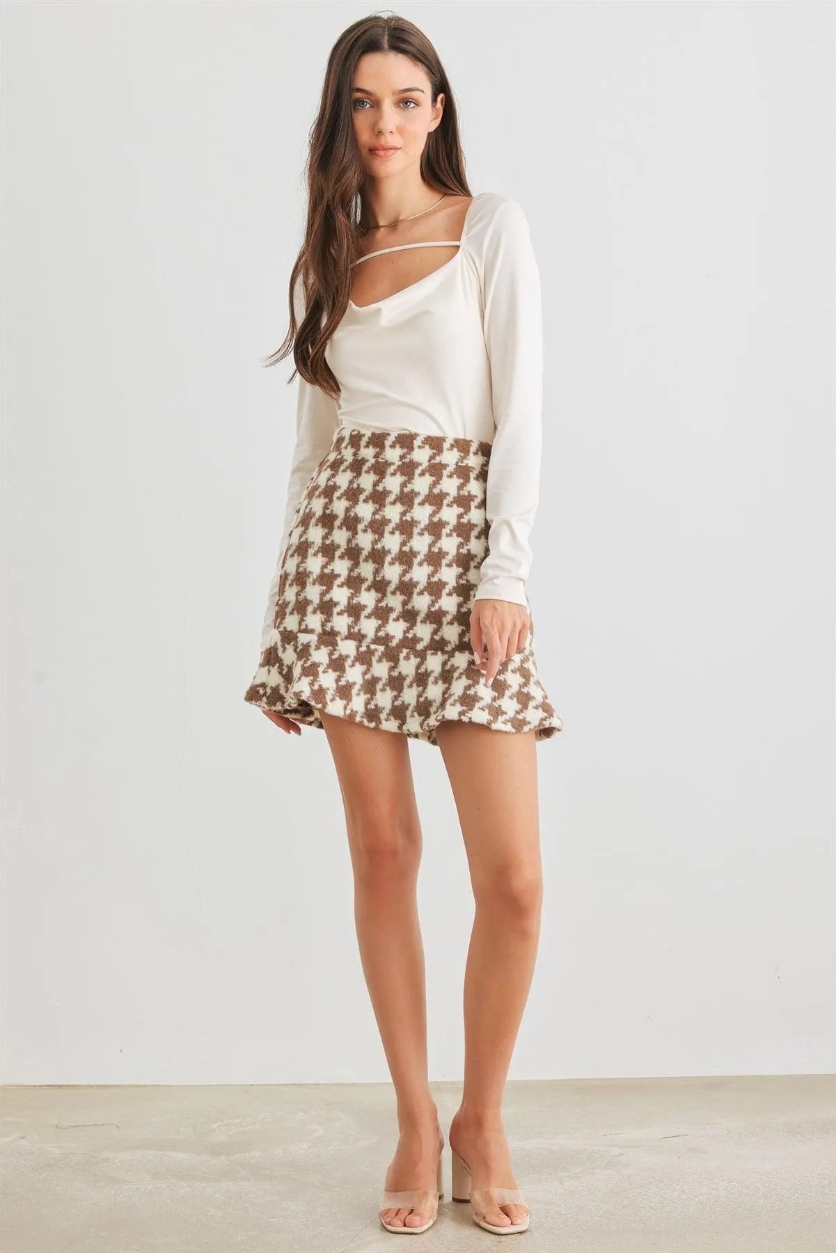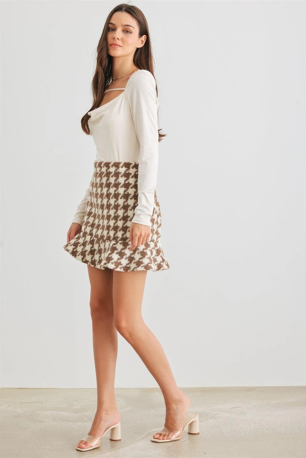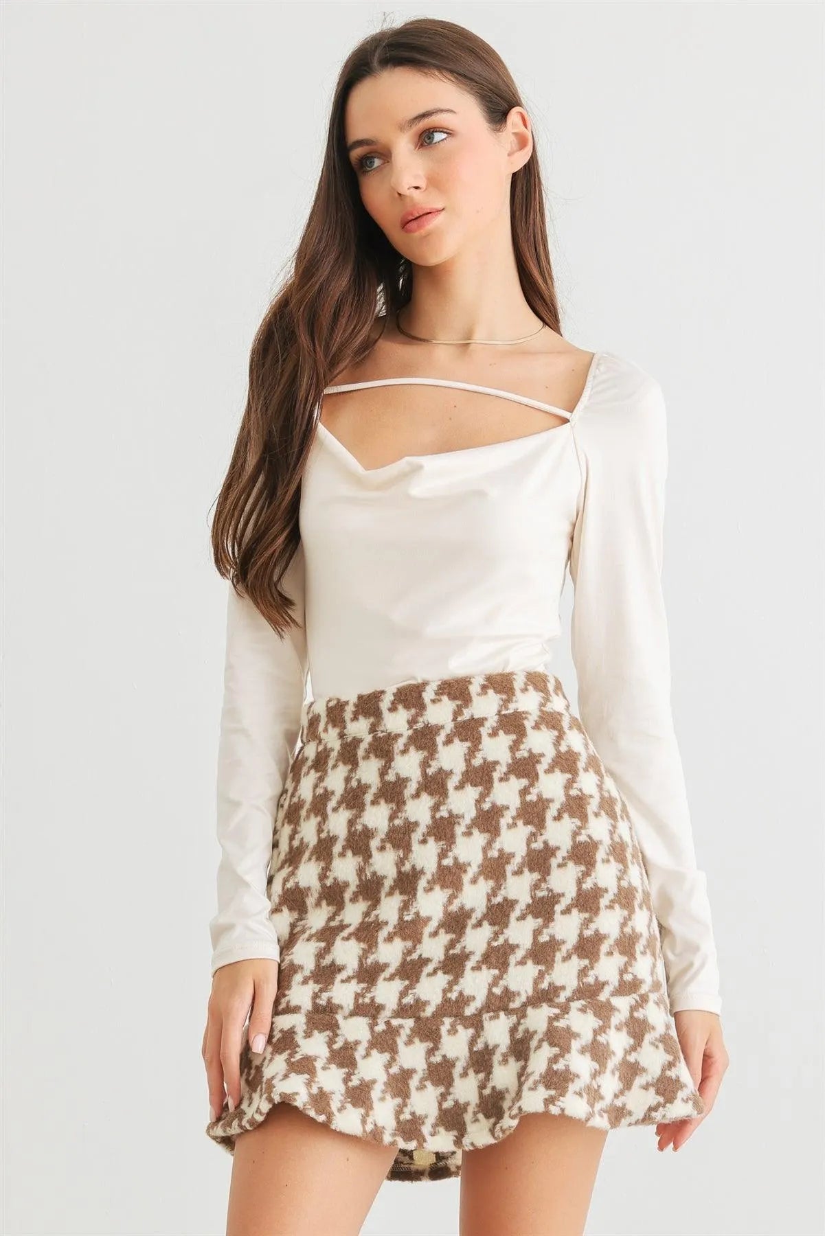 Bone Cowl Neck Strip Detail Long Sleeve Bodysuit /1-2-2-1