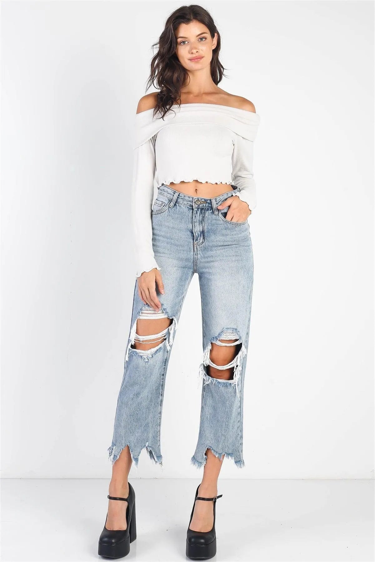🖤 Item Features: Bone, solid color, flannel material, off-the-shoulder style, lettuce edge, long sleeves, collared, cropped length, slim fit, stretchy, not see through, unlined, casual, cute, chic, stylish, trendy, must have