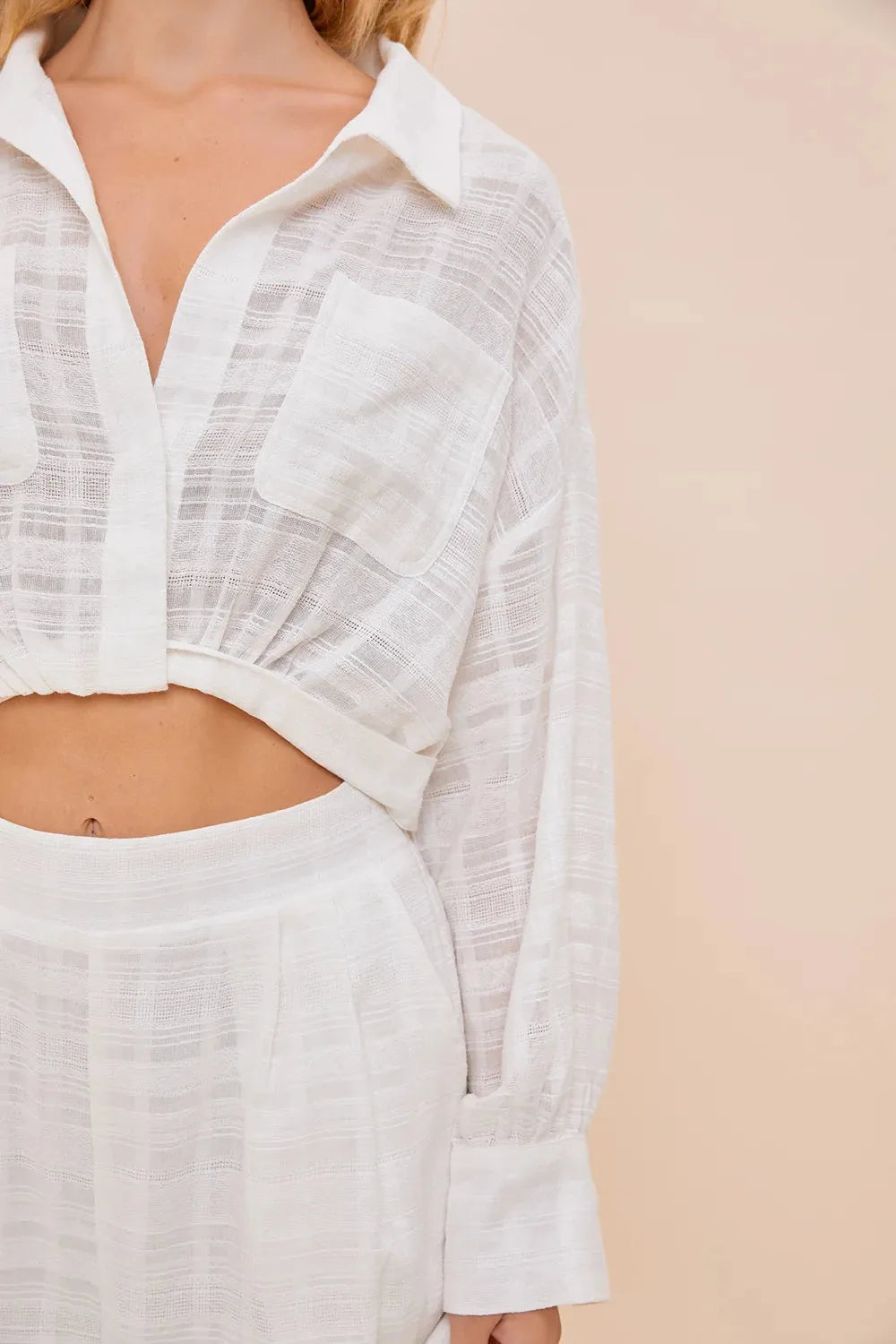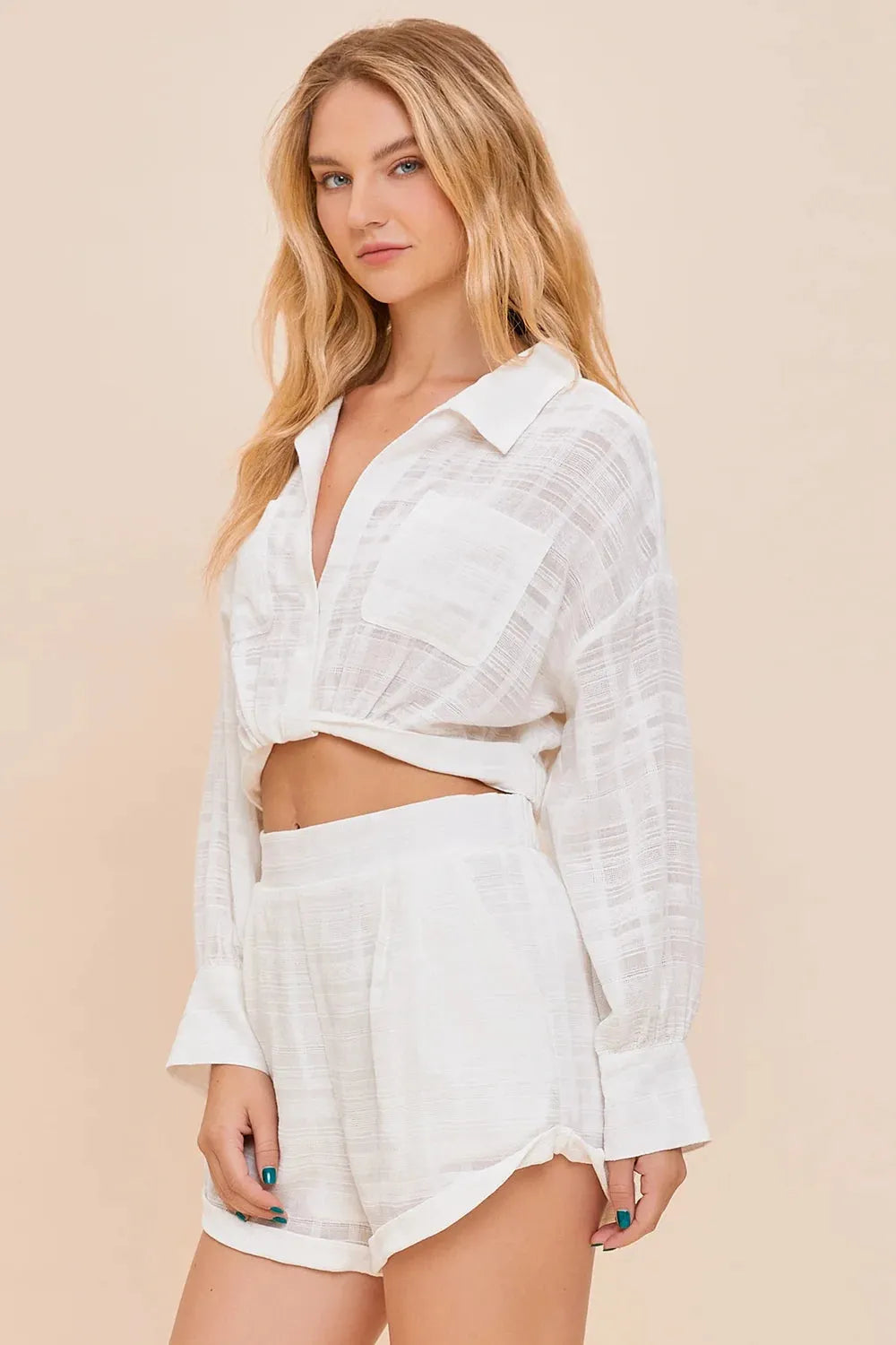 The Linen Textured Front Pocket Twisted Crop Top combines contemporary style with comfort, featuring a unique twisted design that enhances its modern appeal. Crafted from high-quality linen, this top offers a breathable and lightweight feel, perfect for warm weather. The front pocket adds a practical touch, while the textured fabric elevates the overall aesthetic, making it a versatile addition to any wardrobe. Ideal for casual outings or relaxed gatherings, this crop top pairs effortlessly with high-waisted bottoms for a chic look.