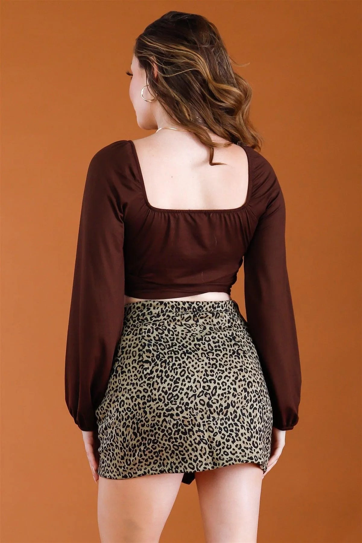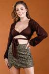 Brown Front Twist Detail Wrap Neck Self-Tie Crop Top /3-2-1