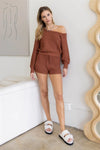 Brown Knit Cold Shoulder Top & Shorts Set /2-2-2