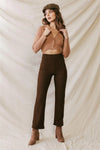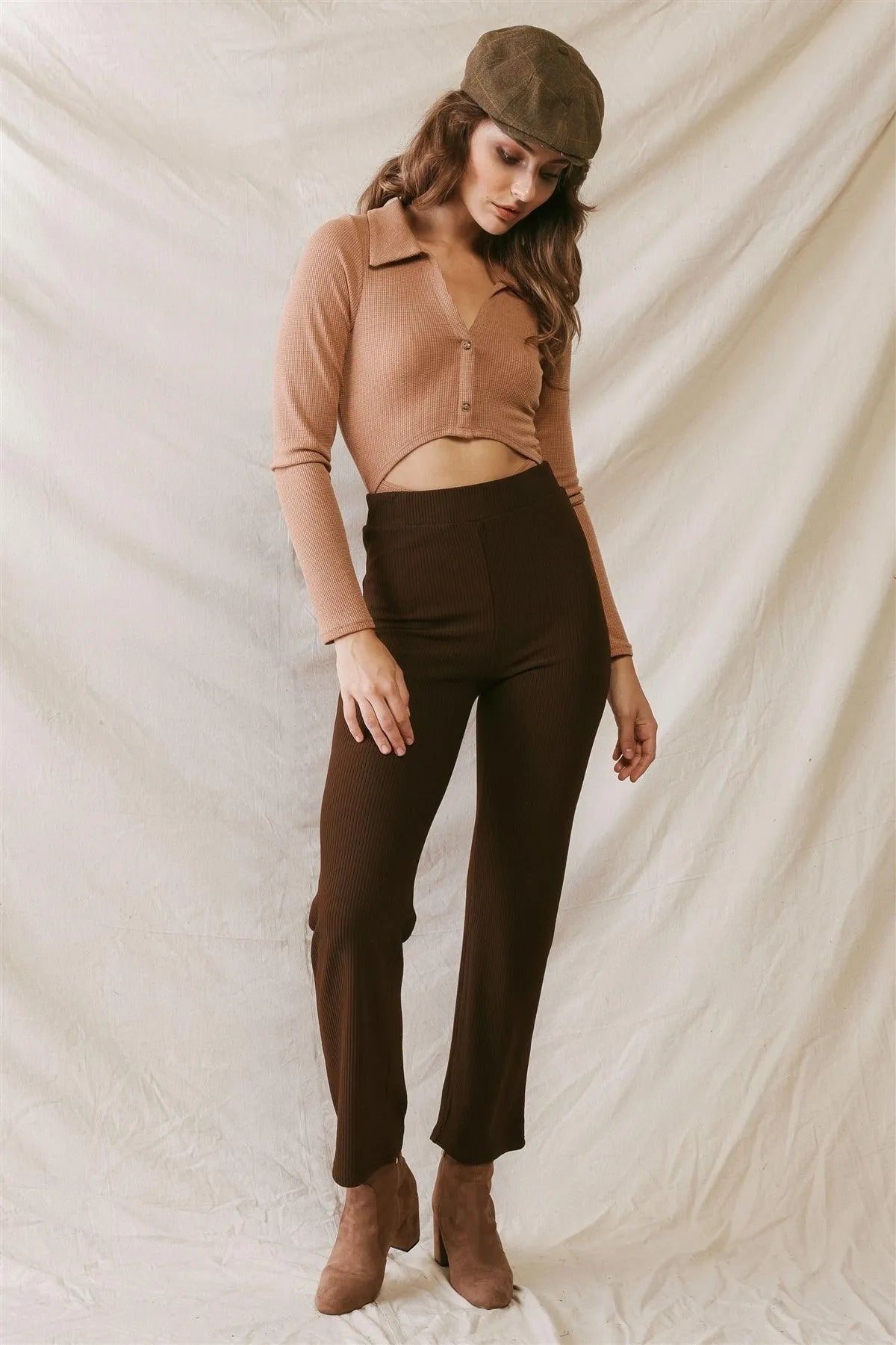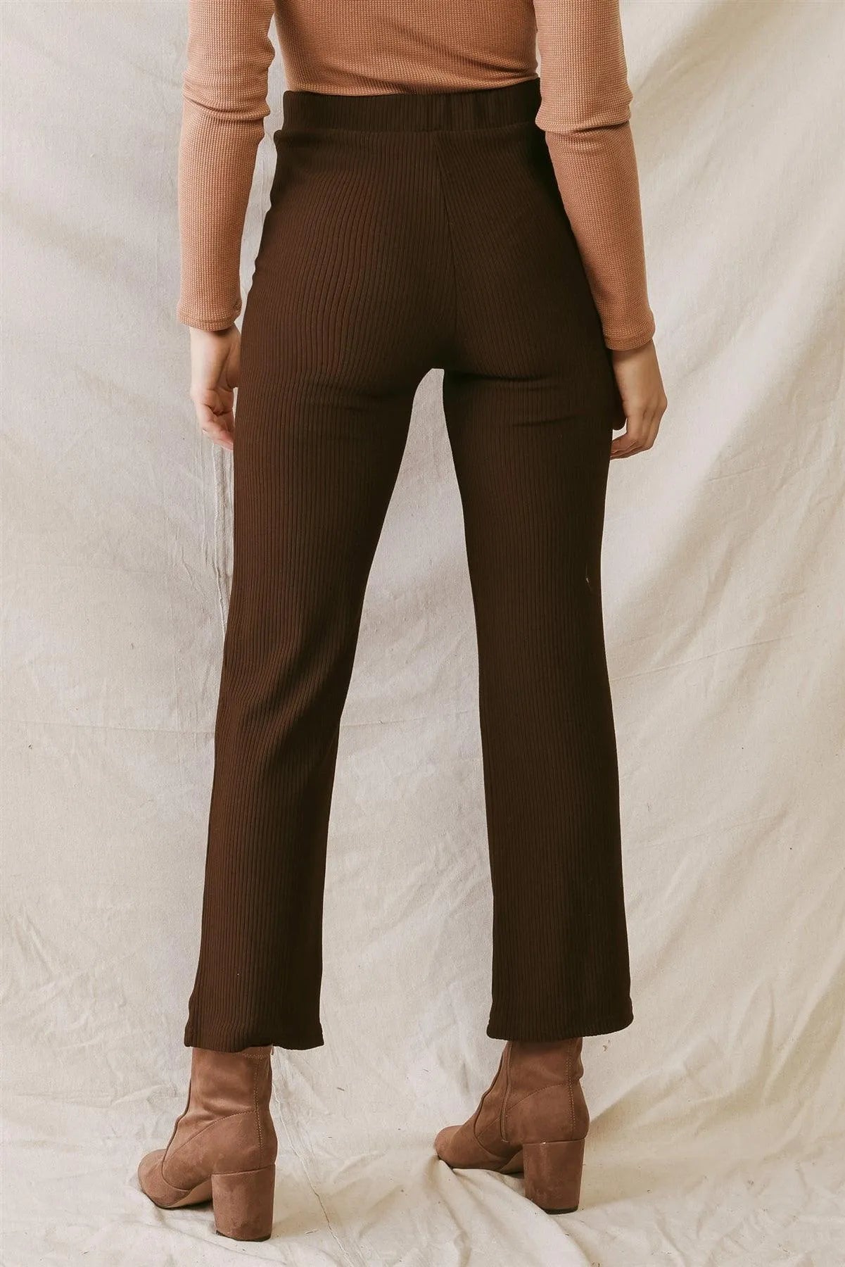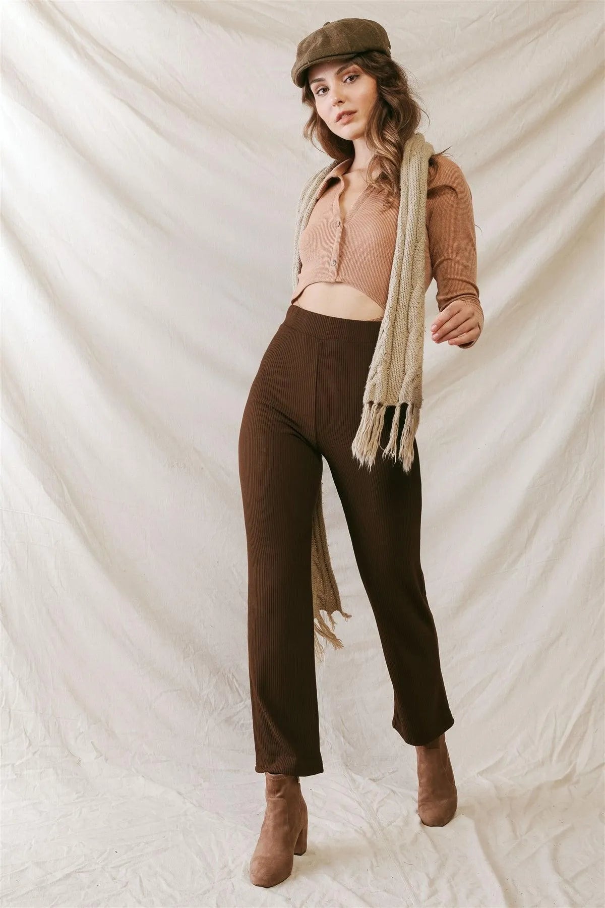 Brown Ribbed High Waist Fitted Pants /2-2-1