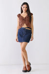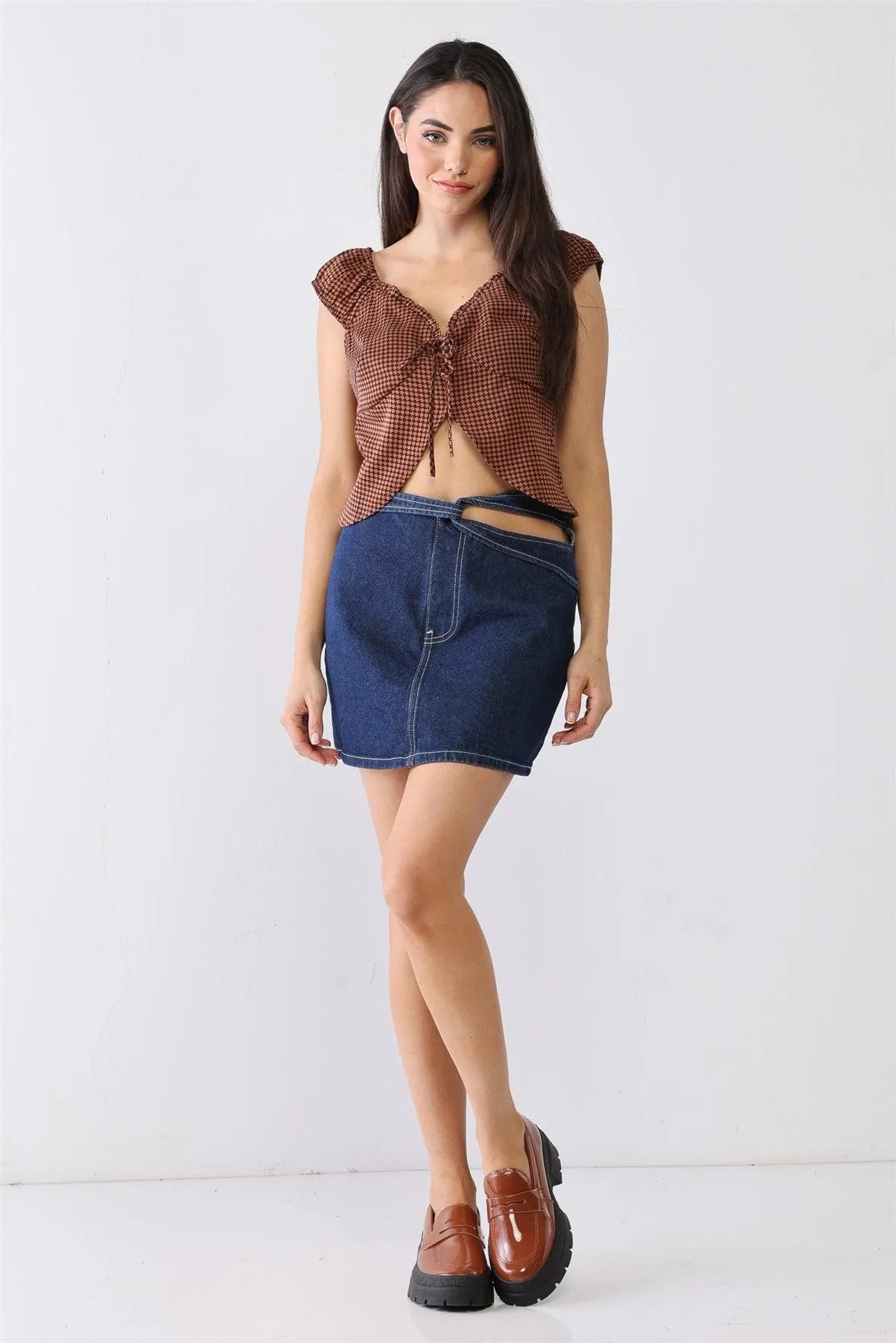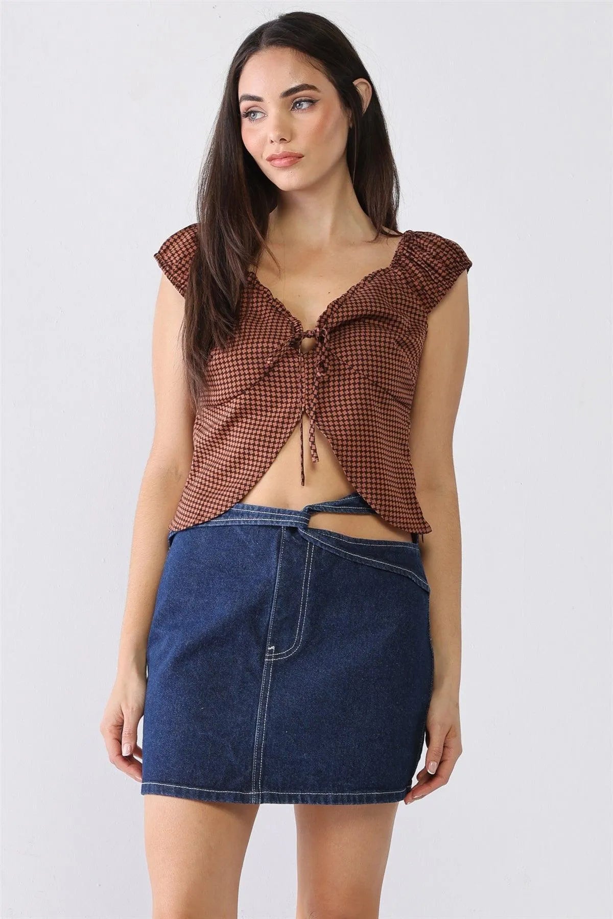 Brown & Tan Geometrical Print Self-Tie Neck Cut-Out Detail Sleeveless Top /1-2-1