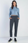 🖤 Elevate your loungewear game with our Charcoal Front Pocket Detail High Waist Jogger Pants! Not only do they feature a flattering high waist and functional pockets, but they're also perfect for a laid-back chic look. Say goodbye to boring sweatpants and hello to comfort and style!