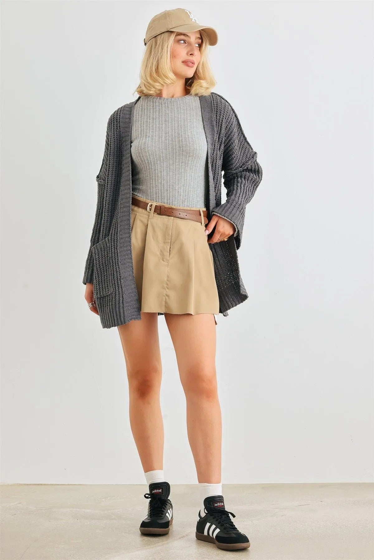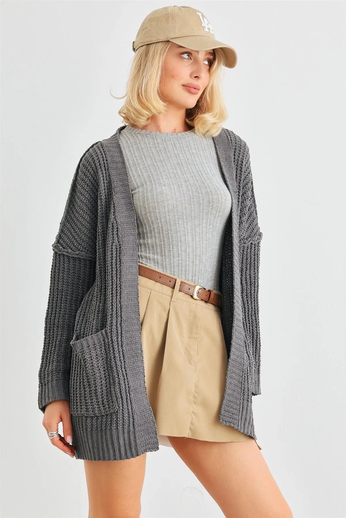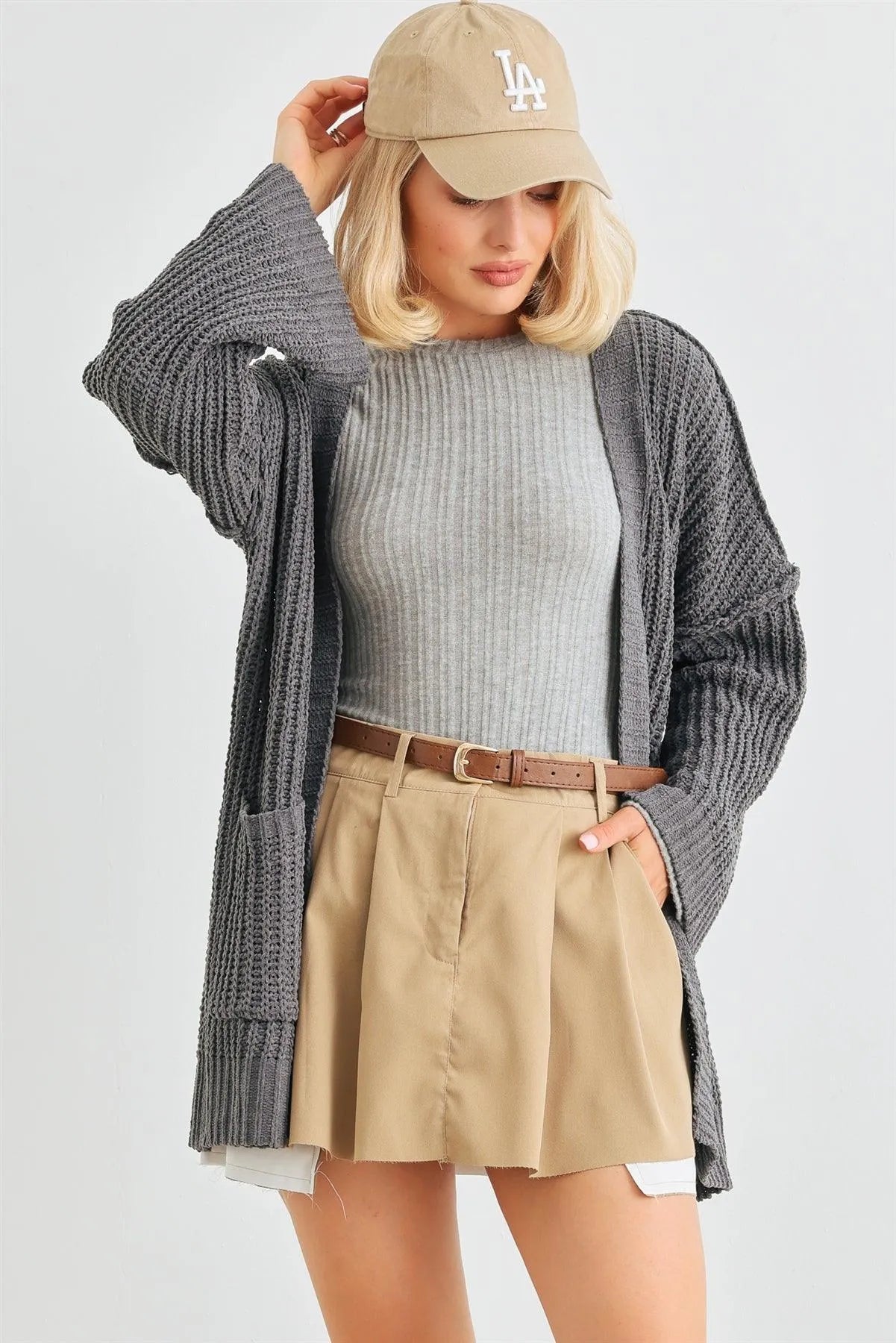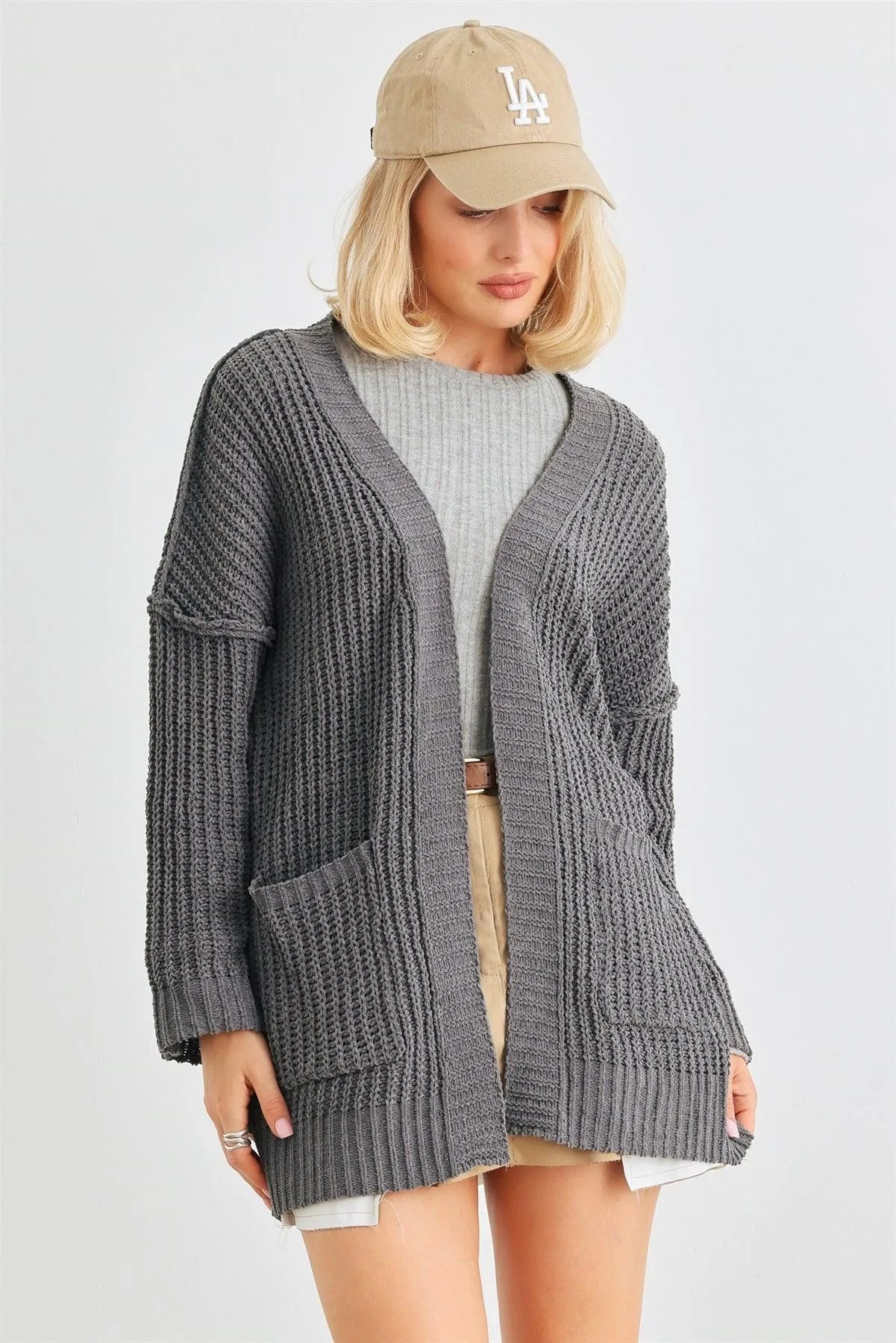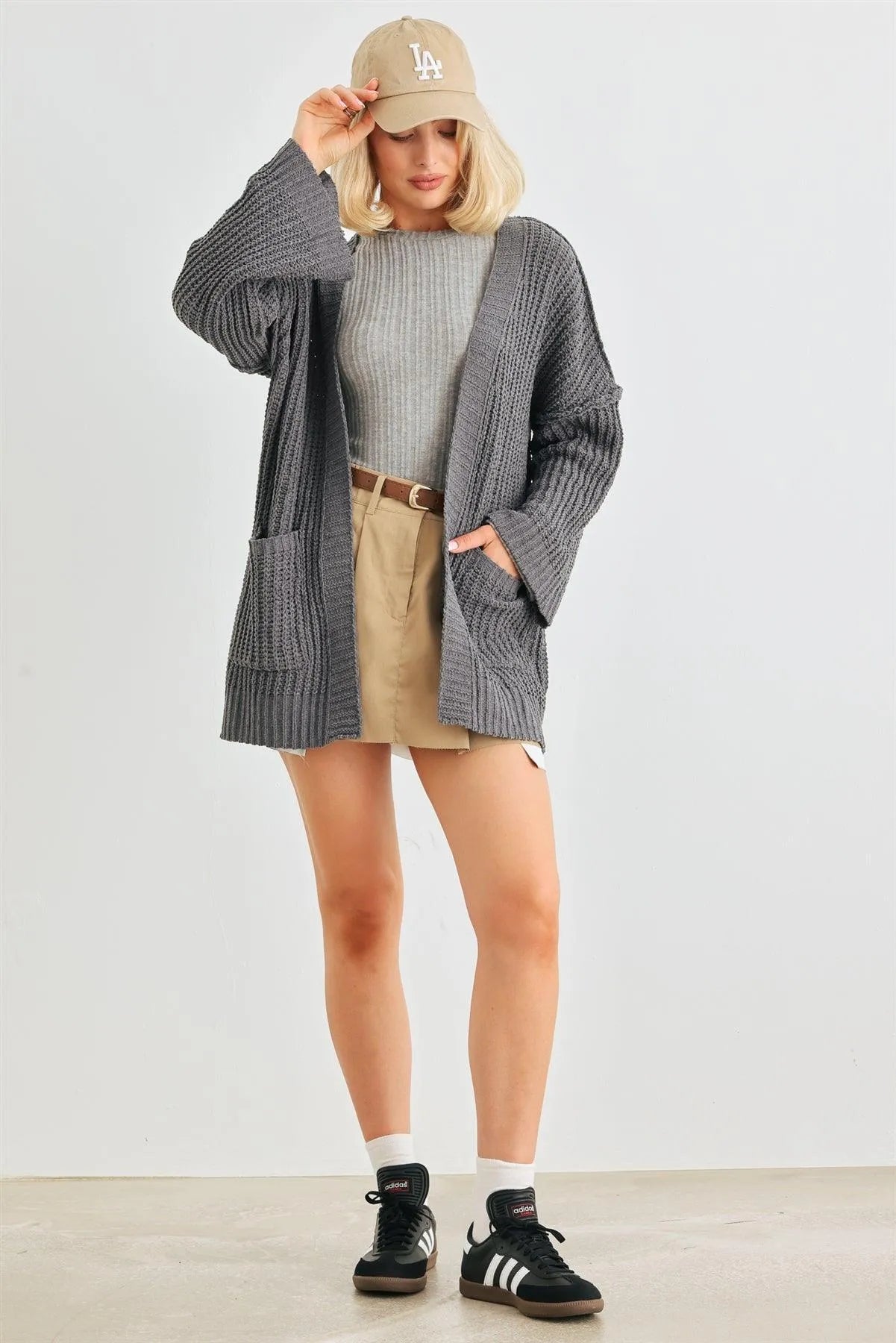 🖤 Item Features: Charcoal, knit material, long sleeves, dropped shoulders, two pockets, open front, relaxed fit, non-stretchy, unlined, not see through, cute, warm, cozy, fall/winter