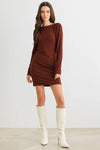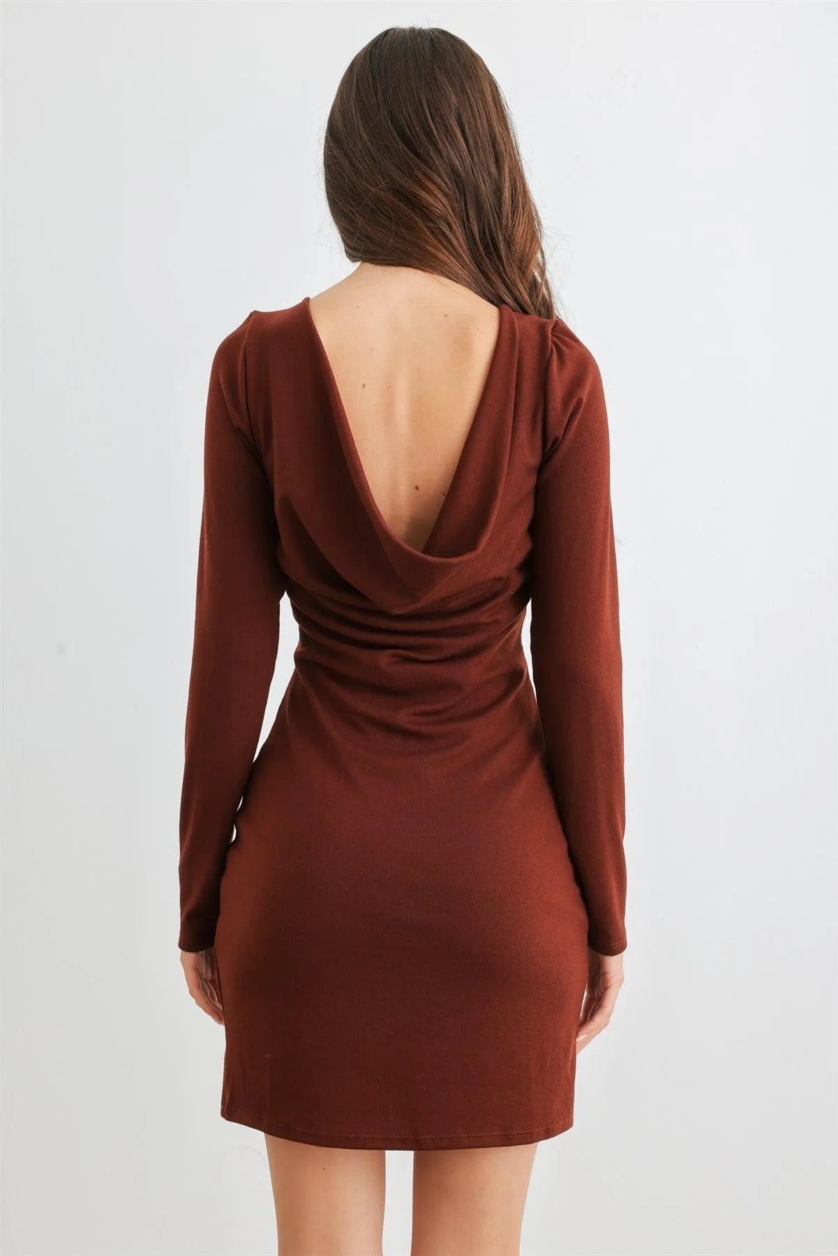 Cognac Cowl Back Long Sleeve Mini Dress /1-1-2-1