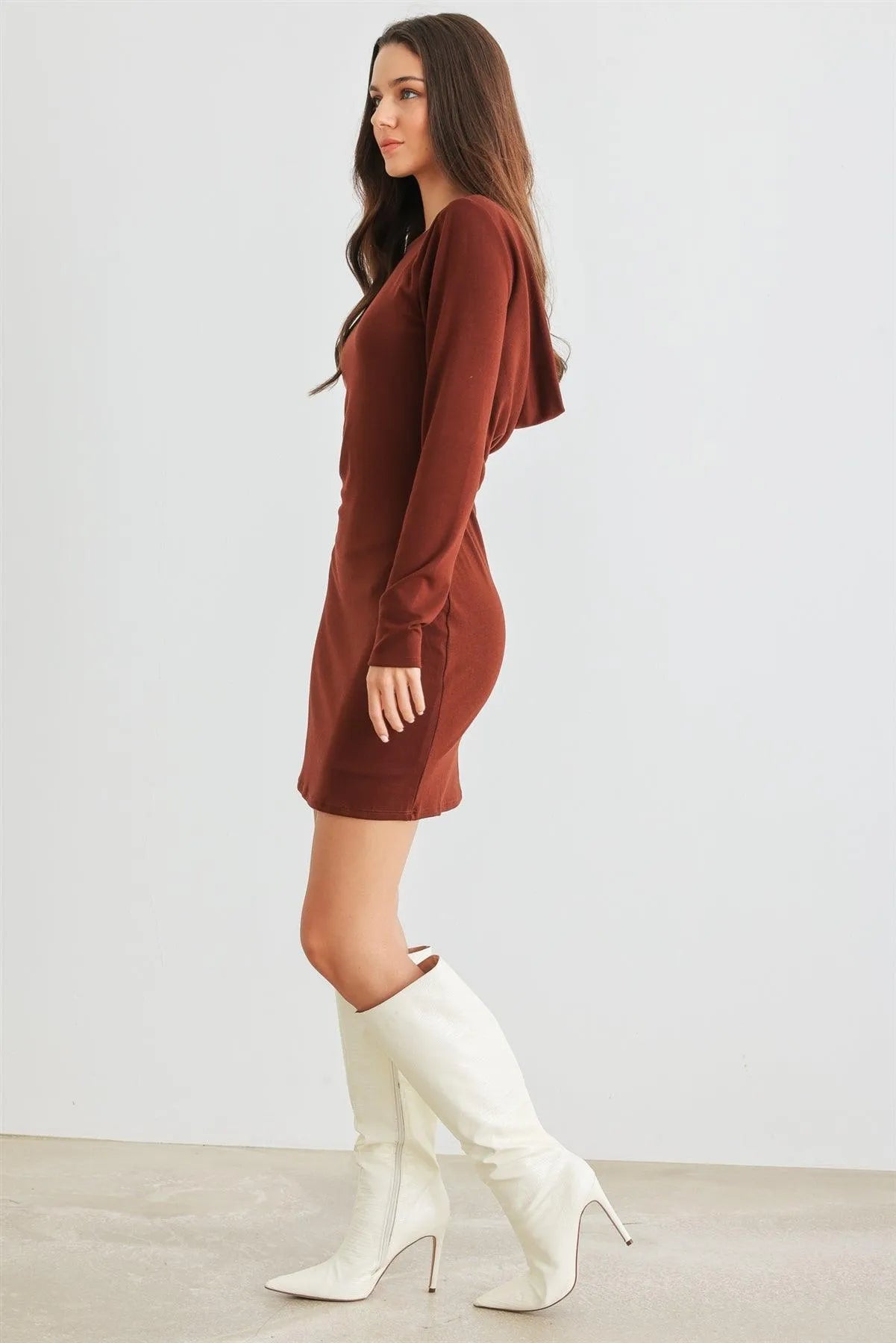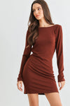 Cognac Cowl Back Long Sleeve Mini Dress /1-2-2-1