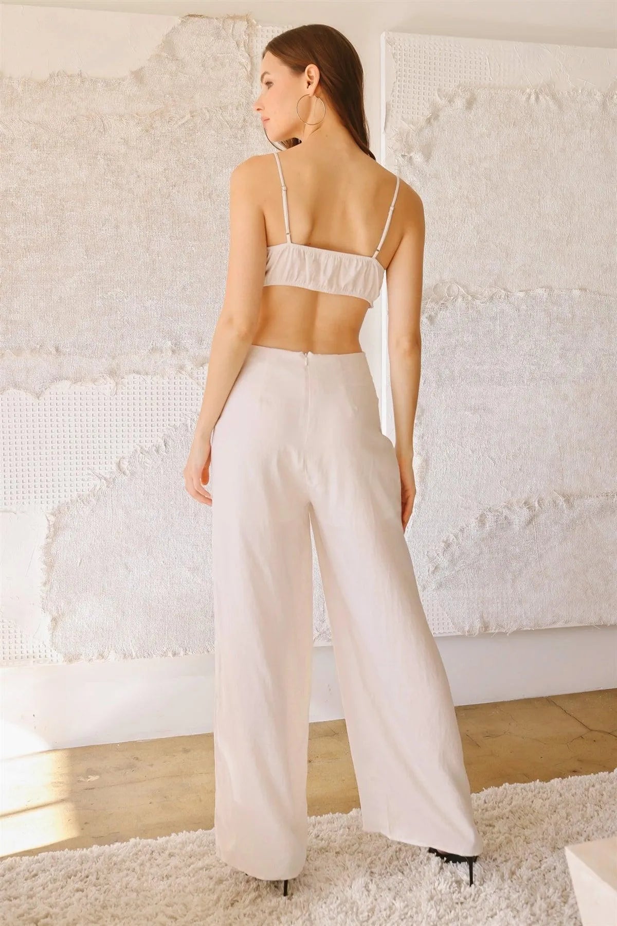 Cream Bow Sleeveless Strappy Cut-Out Jumpsuit /3-2-1