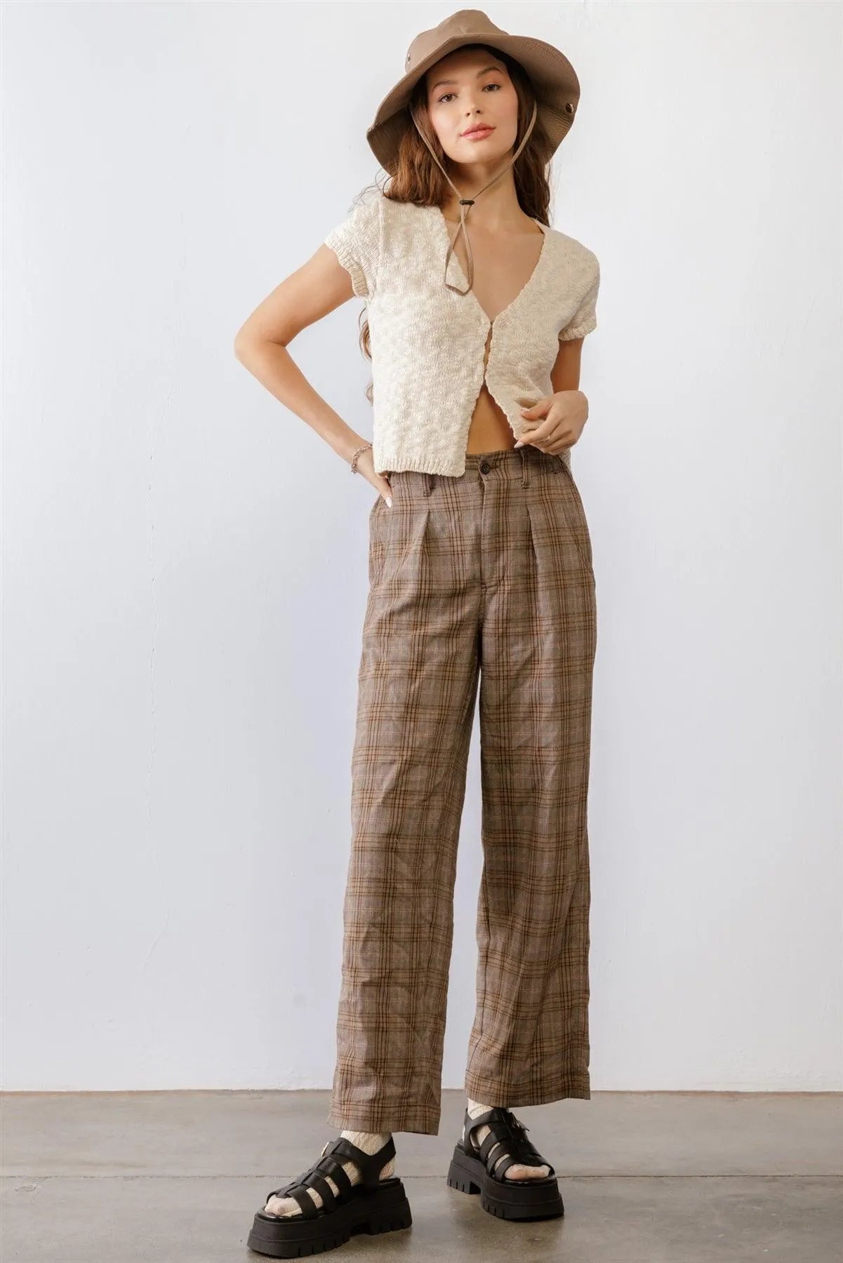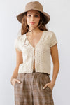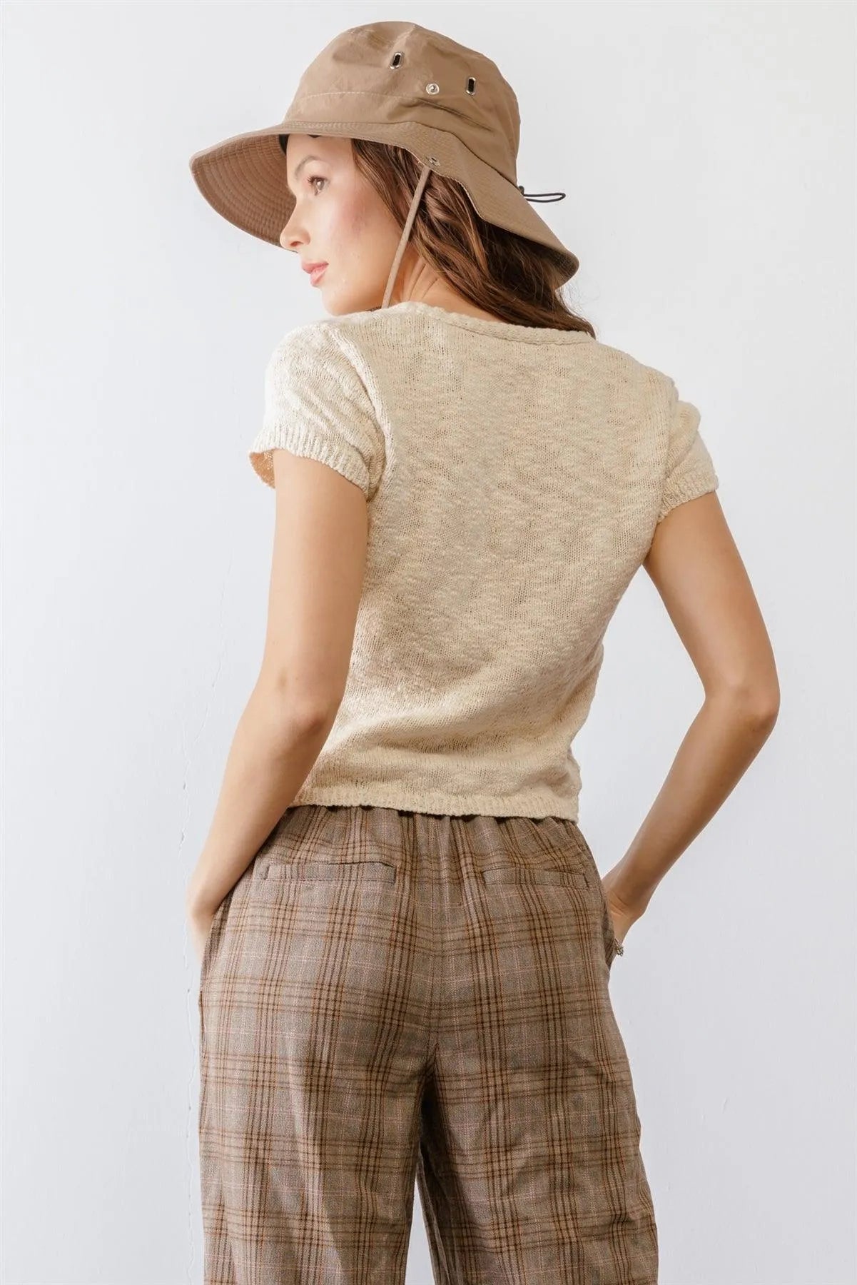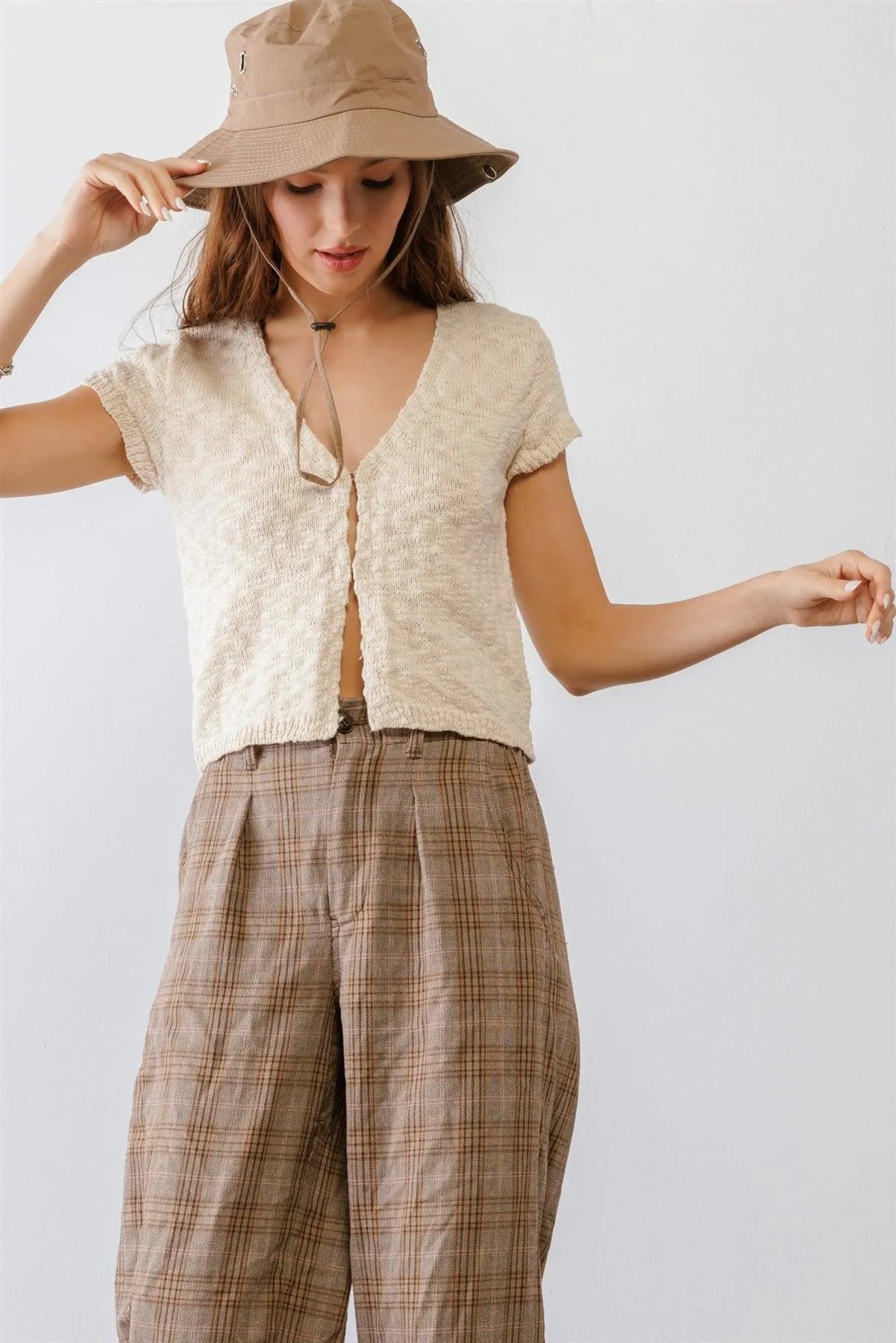 Cream Cotton Knit Short Sleeve Cardigan Crop Top /1-2-2-1