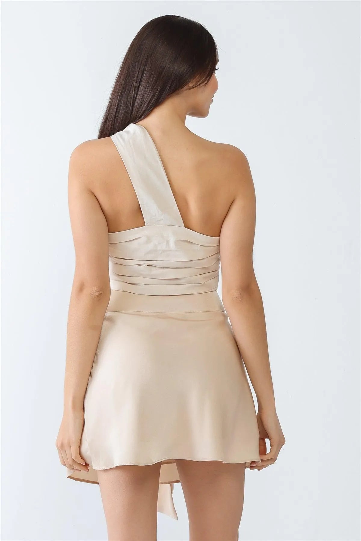 🖤 Item Features: Cream, solid color, cotton material, pleated, one shoulder, cut-out, side hidden zip down closure, cropped length, non-stretchy, lined, non-sheer, cute, girlish, stylish, cool