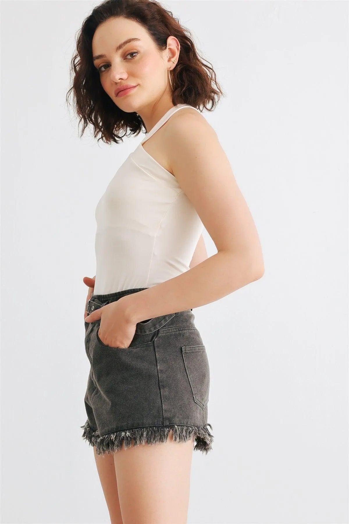 🖤 Item Features: Cream, solid color, scoop neckline, sleeveless, criss-cross back, soft to touch, thong double snap closure, semi-stretchy, not see through, unlined, cool, must-have, lifestyle