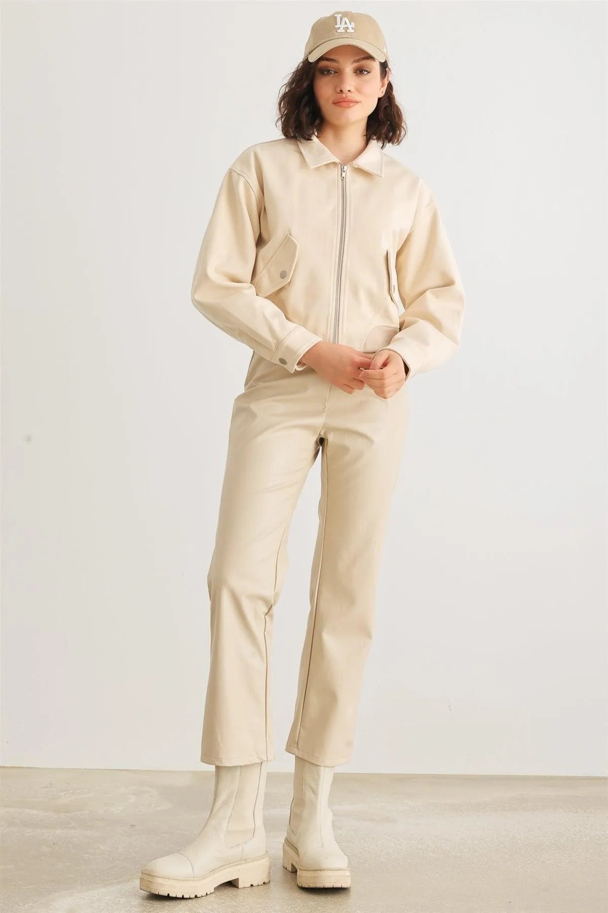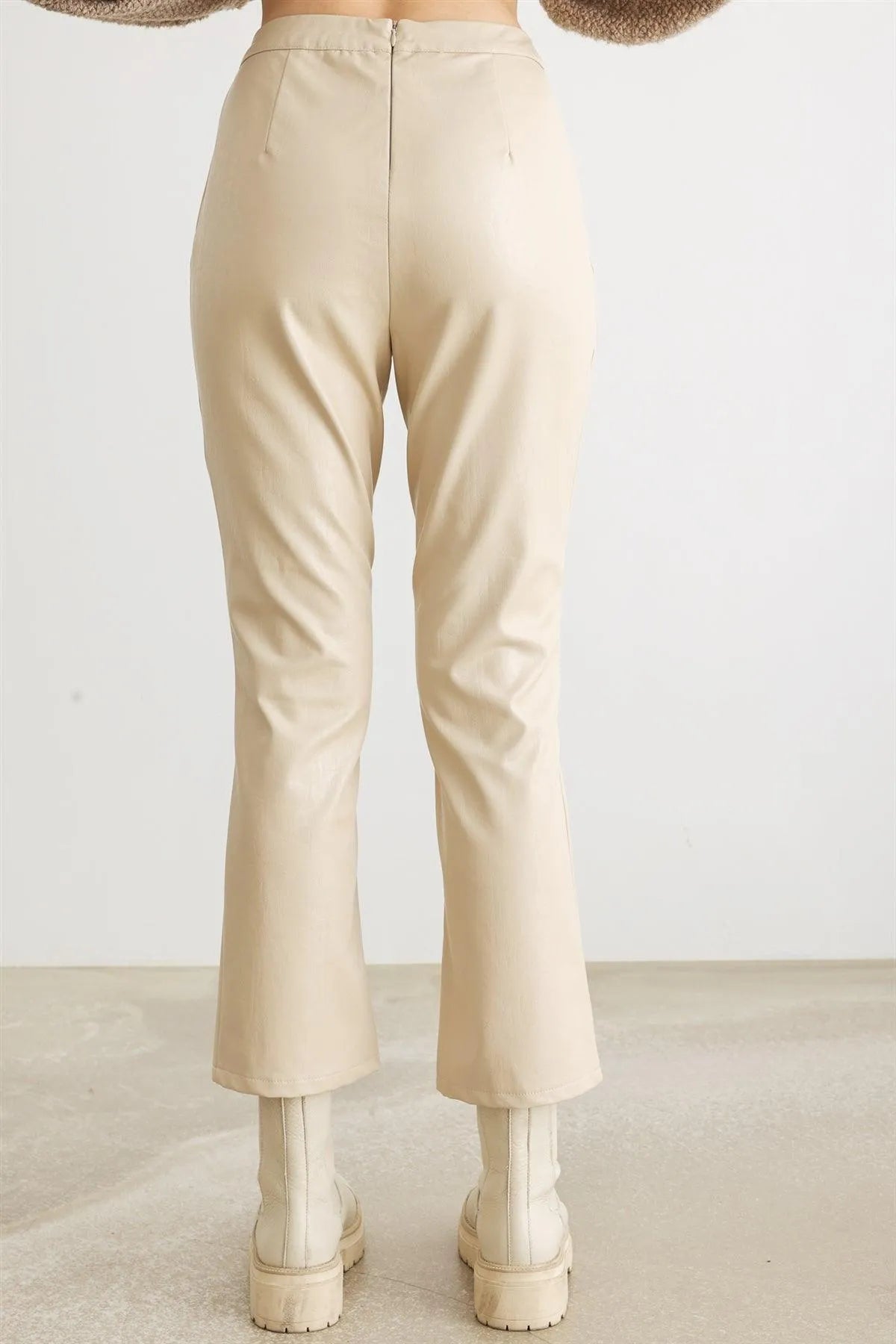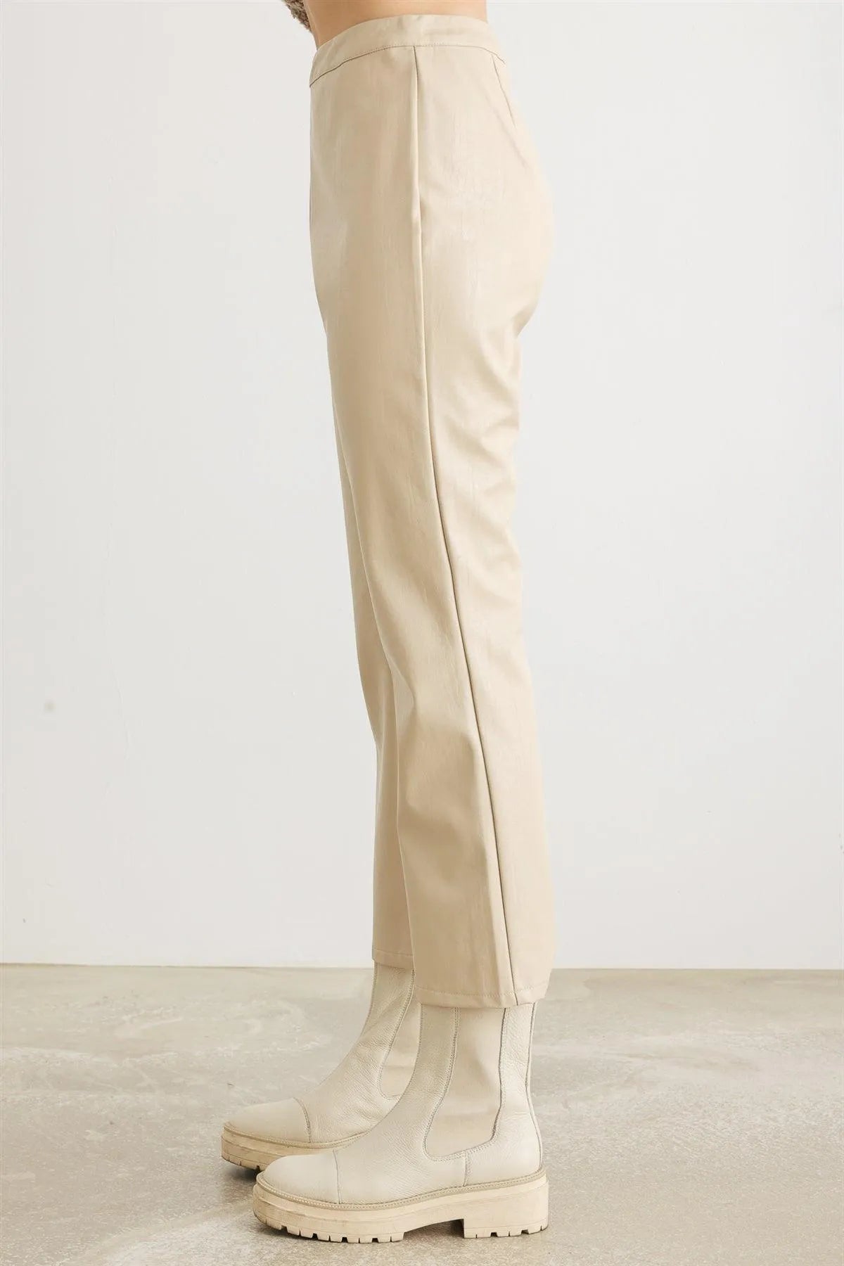 Cream Faux Leather High Waist Pants /1-2-2-1