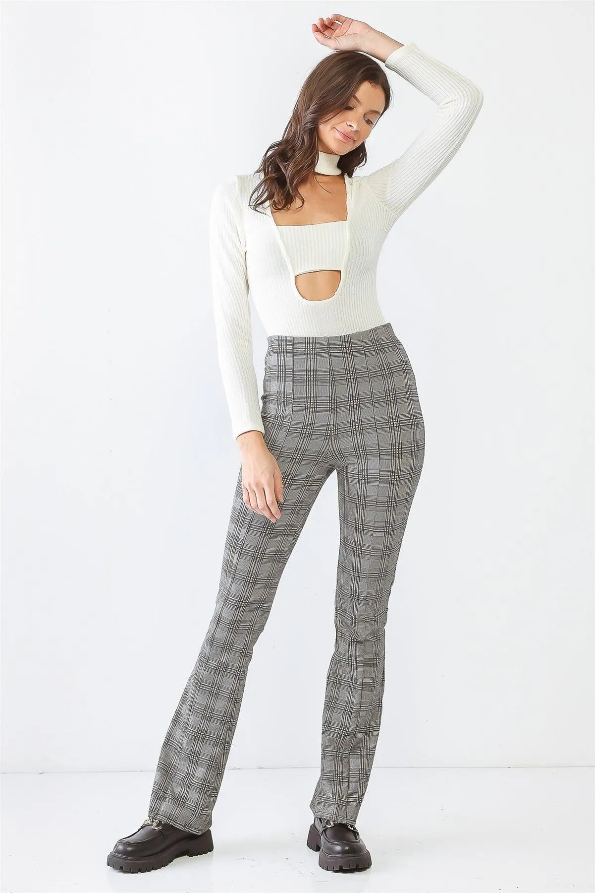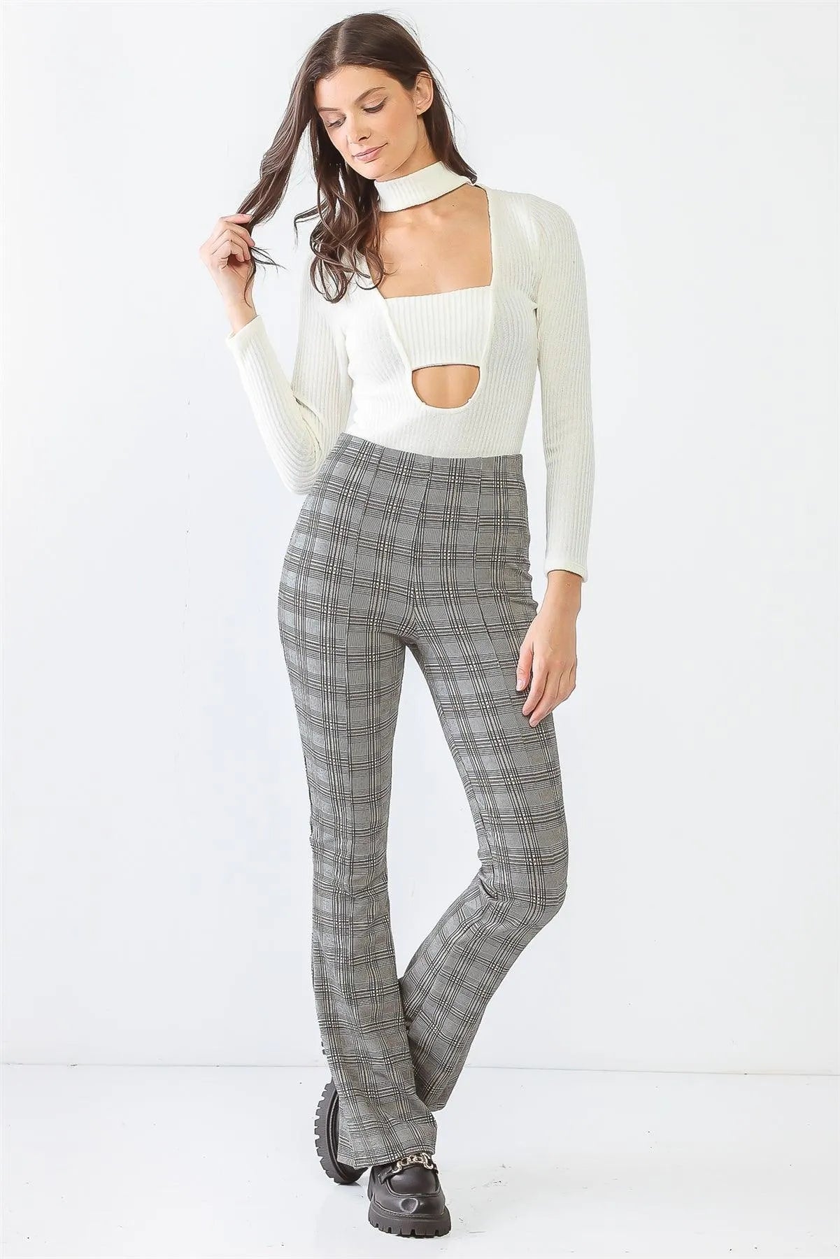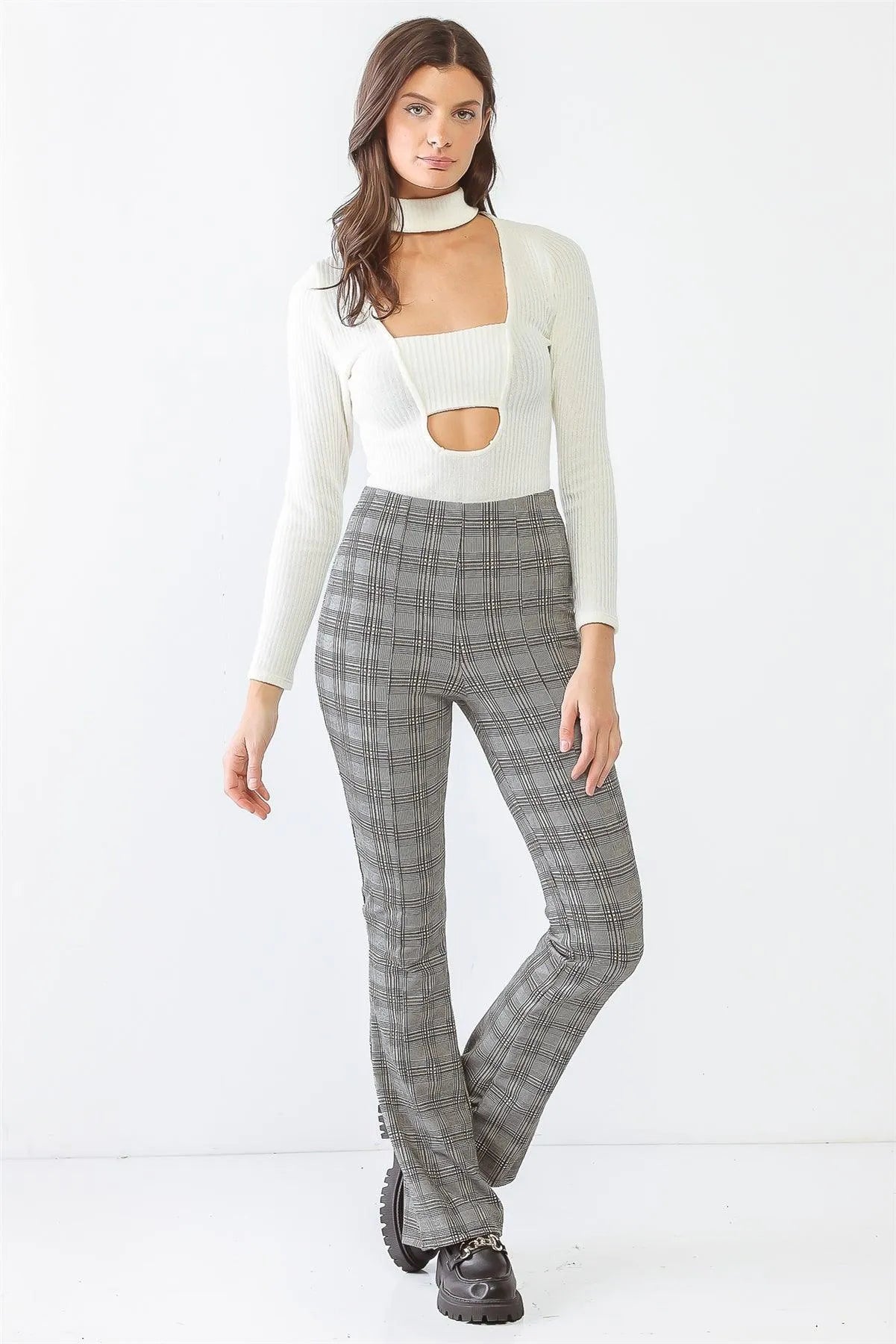 Knit Ribbed Cut-Out U-Shape Bust Detail Neck Bodysuit