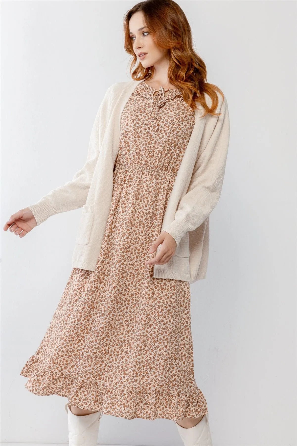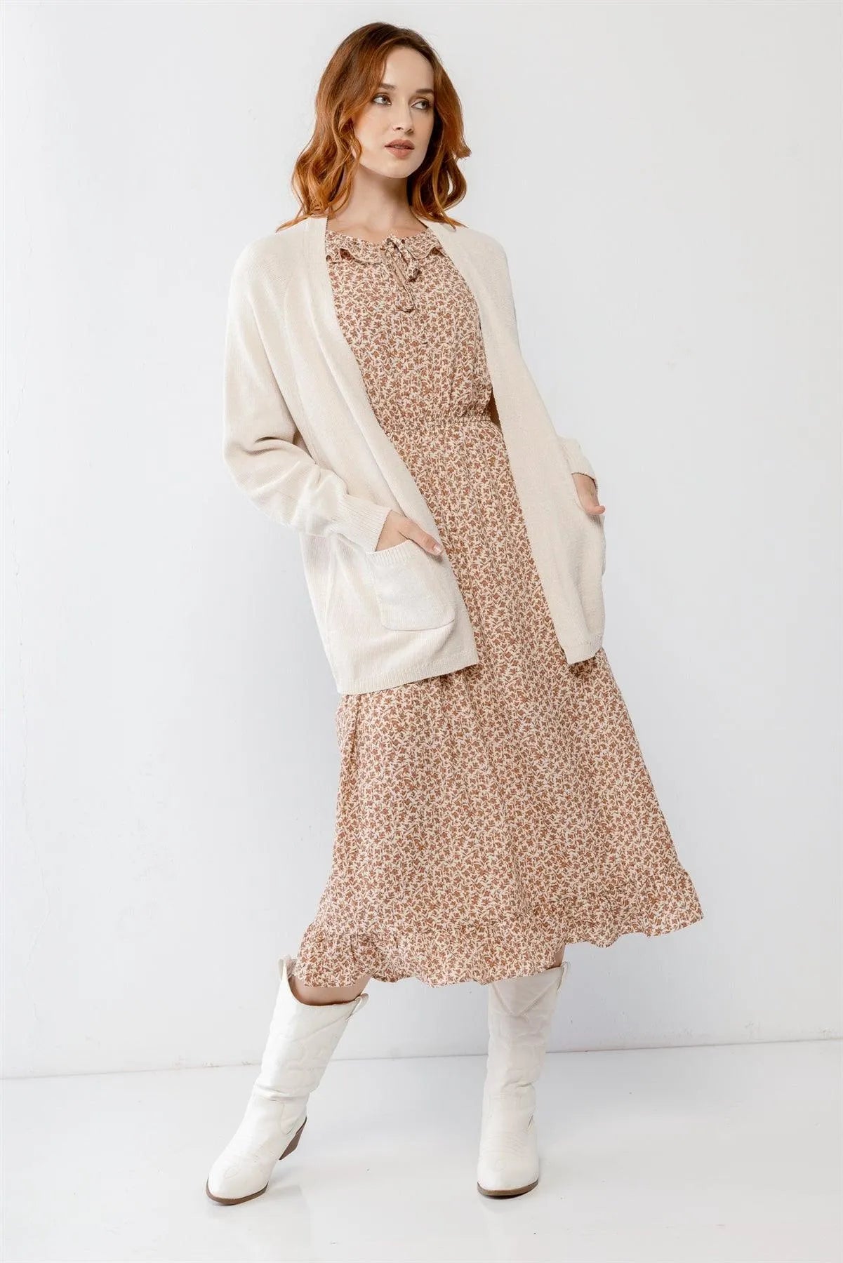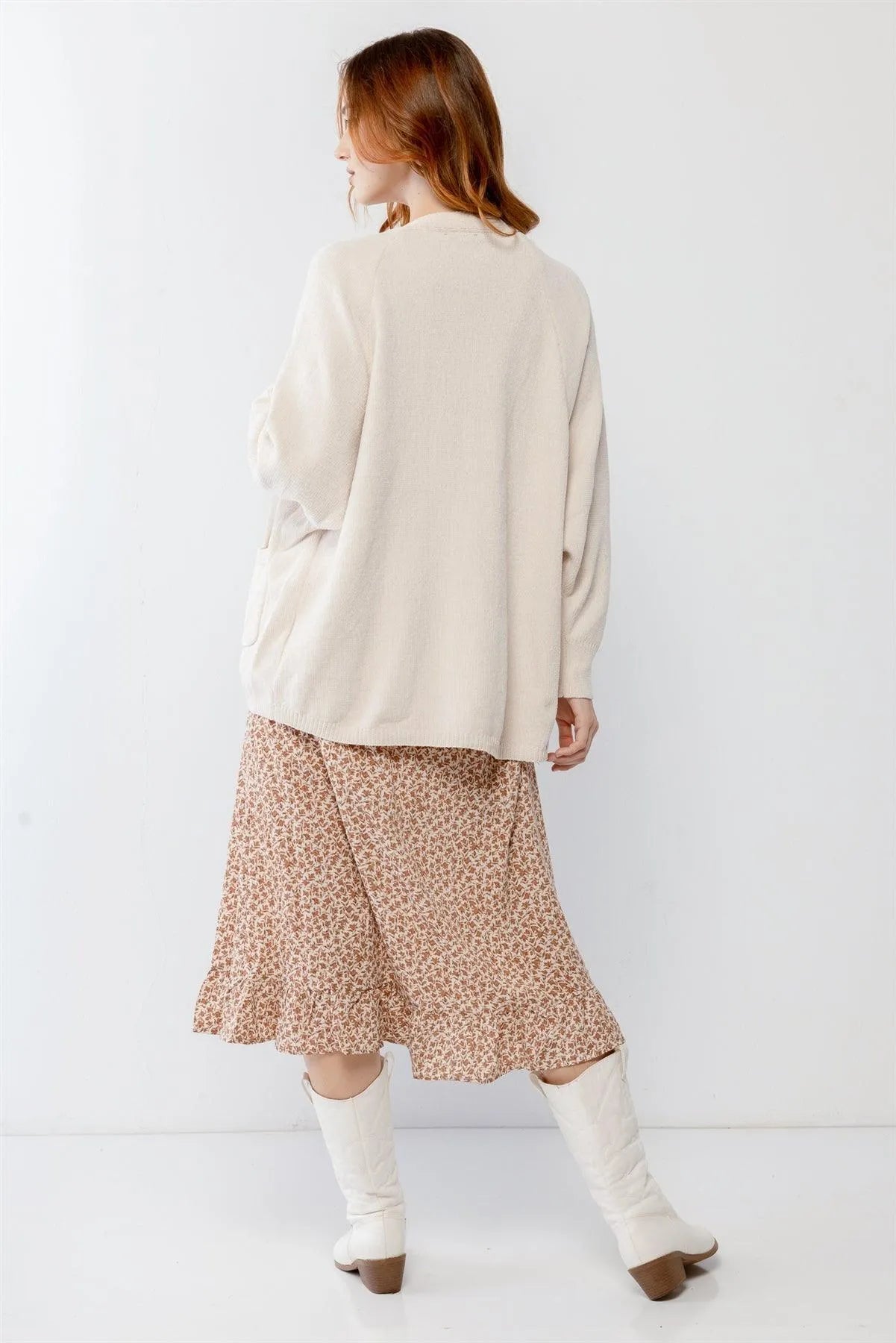 Cream Knit Two Pocket Long Sleeve Open Front Cardigan /2-2-2