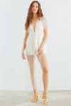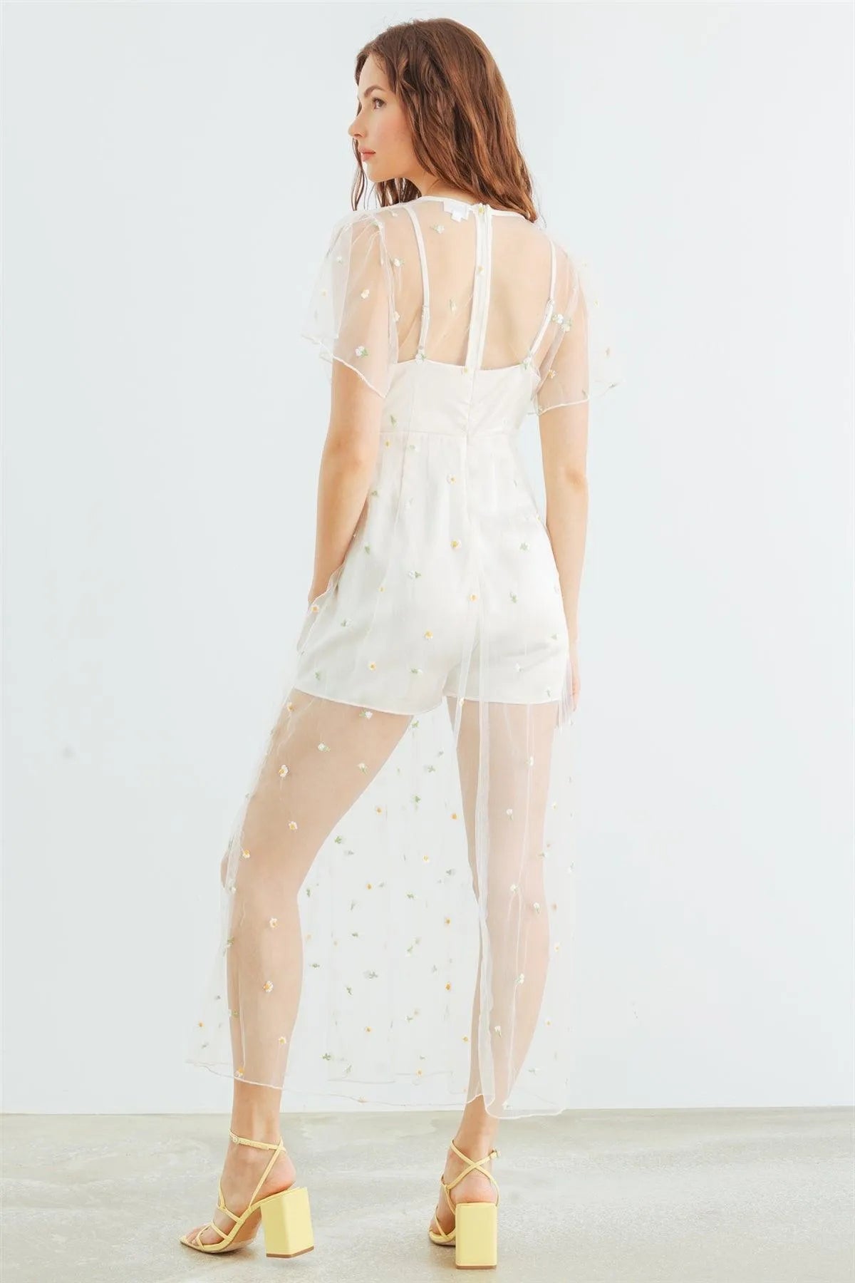Cream Satin Mesh Floral Embroidery Romper /1-2-2-1