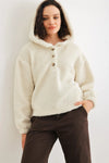 Teddy Knit Button-Up Two Pocket Hooded Sweatshirt