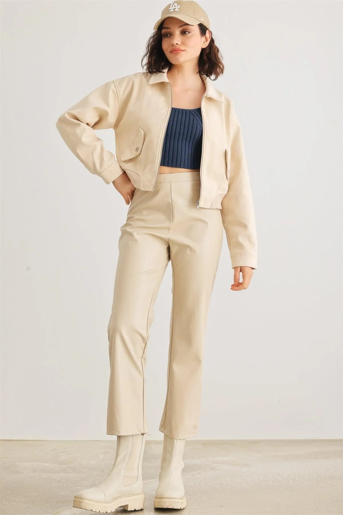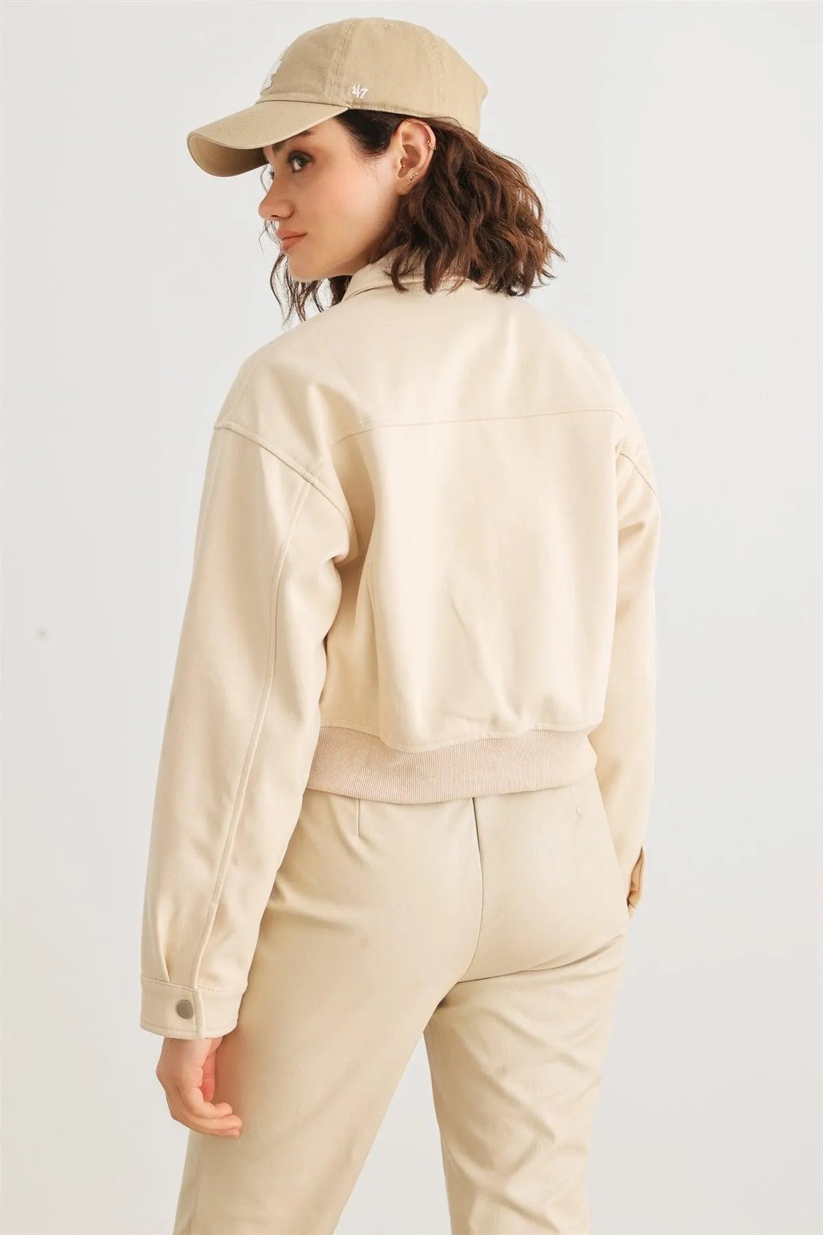 Cream Vegan Suede Collared Neck Two Pocket Zip-Up Jacket /1-2-2-1