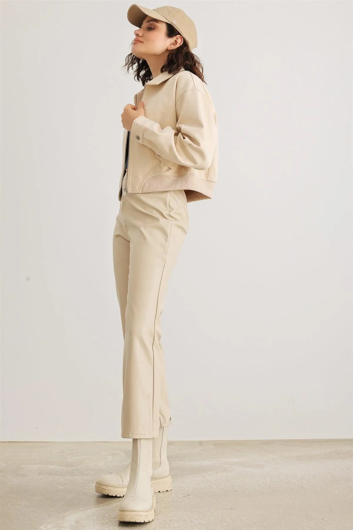 🖤 Item Features: Cream, vegan suede, solid color, elasticized hem, two pockets, front zip-up closure, cuffed long sleeves, collared neckline, semi-stretchy, lined, not see through, casual, cute, warm, cozy, stylish, trendy, lifestyle