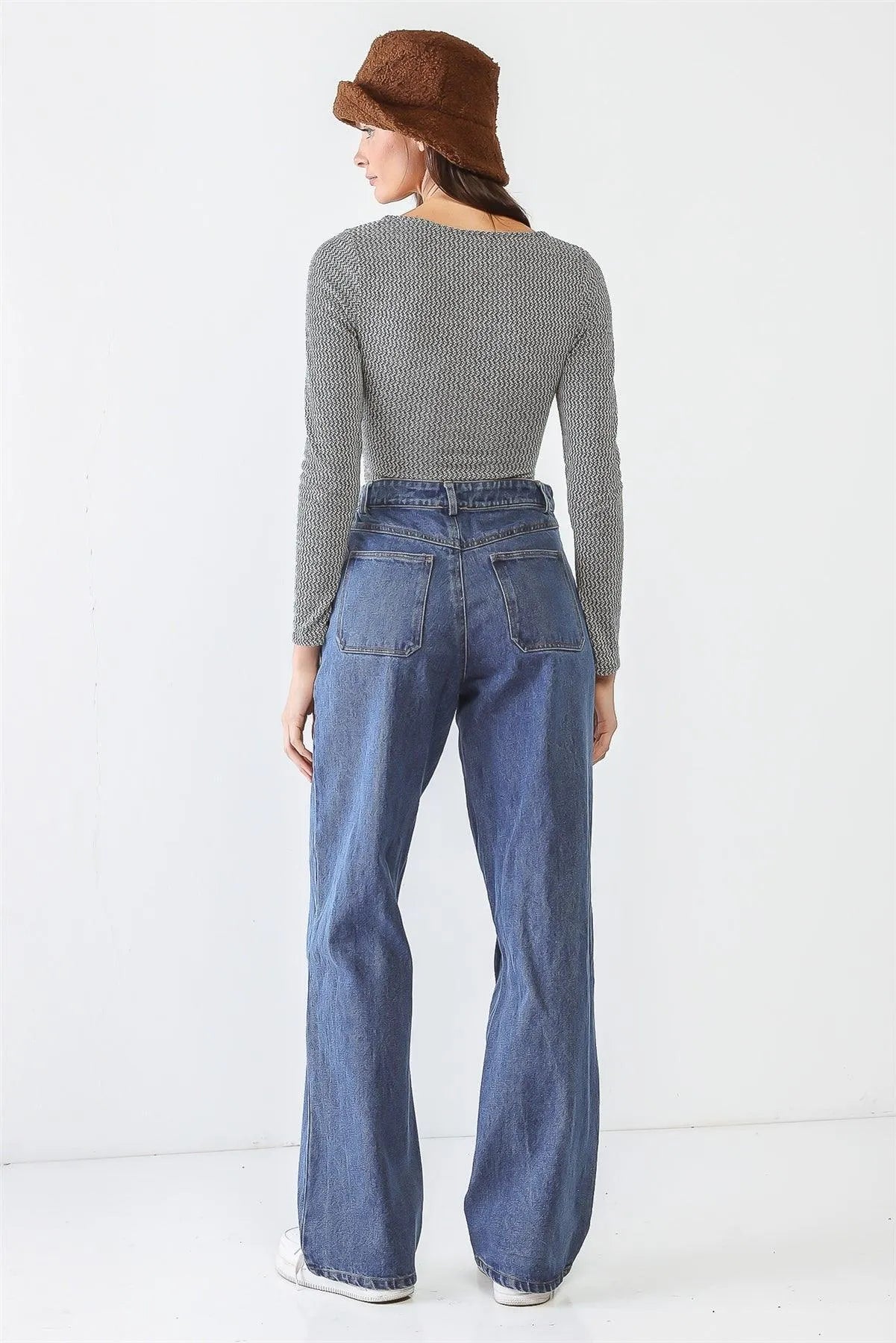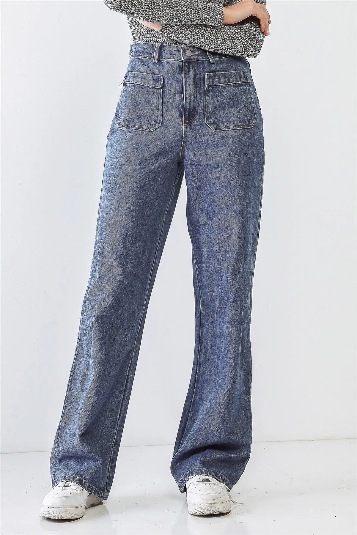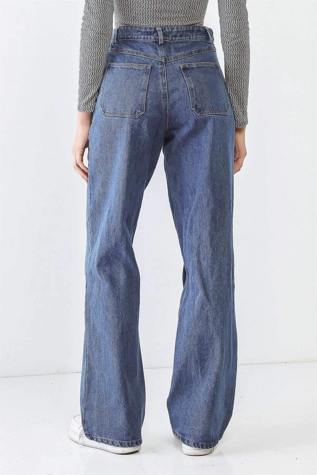 Denim Blue Cotton High Waist Four Pocket Baggy Style Jeans /1-2-2-1