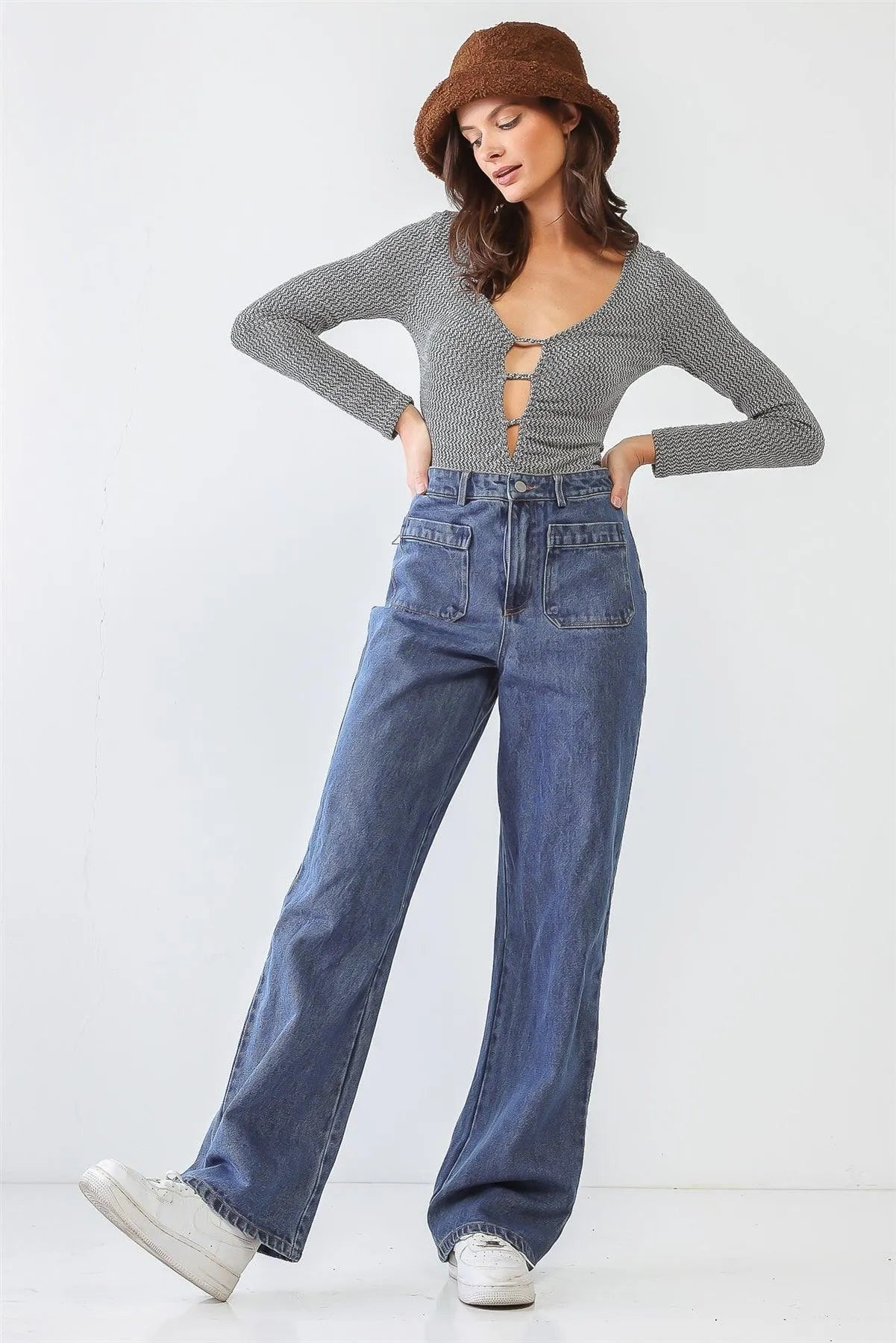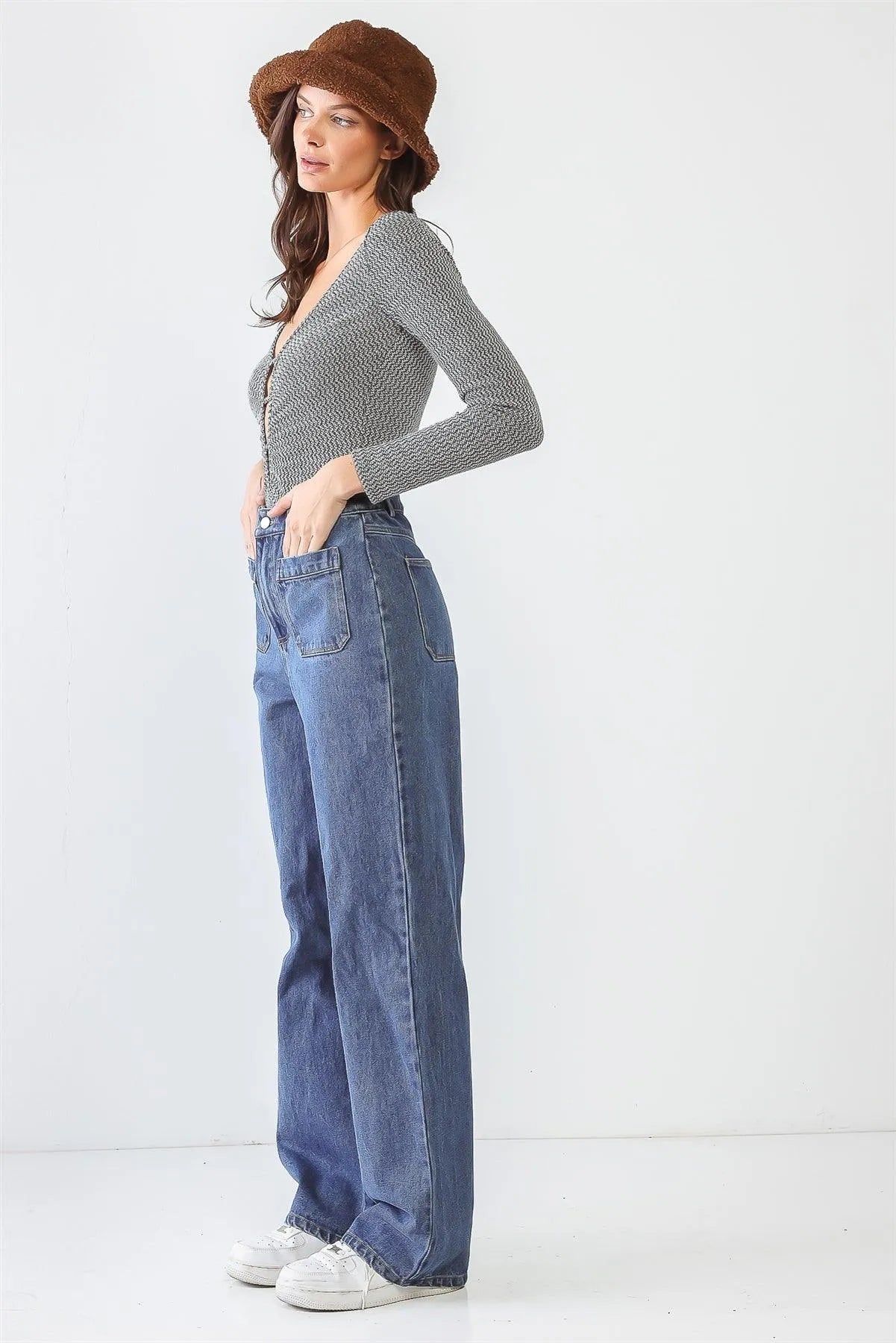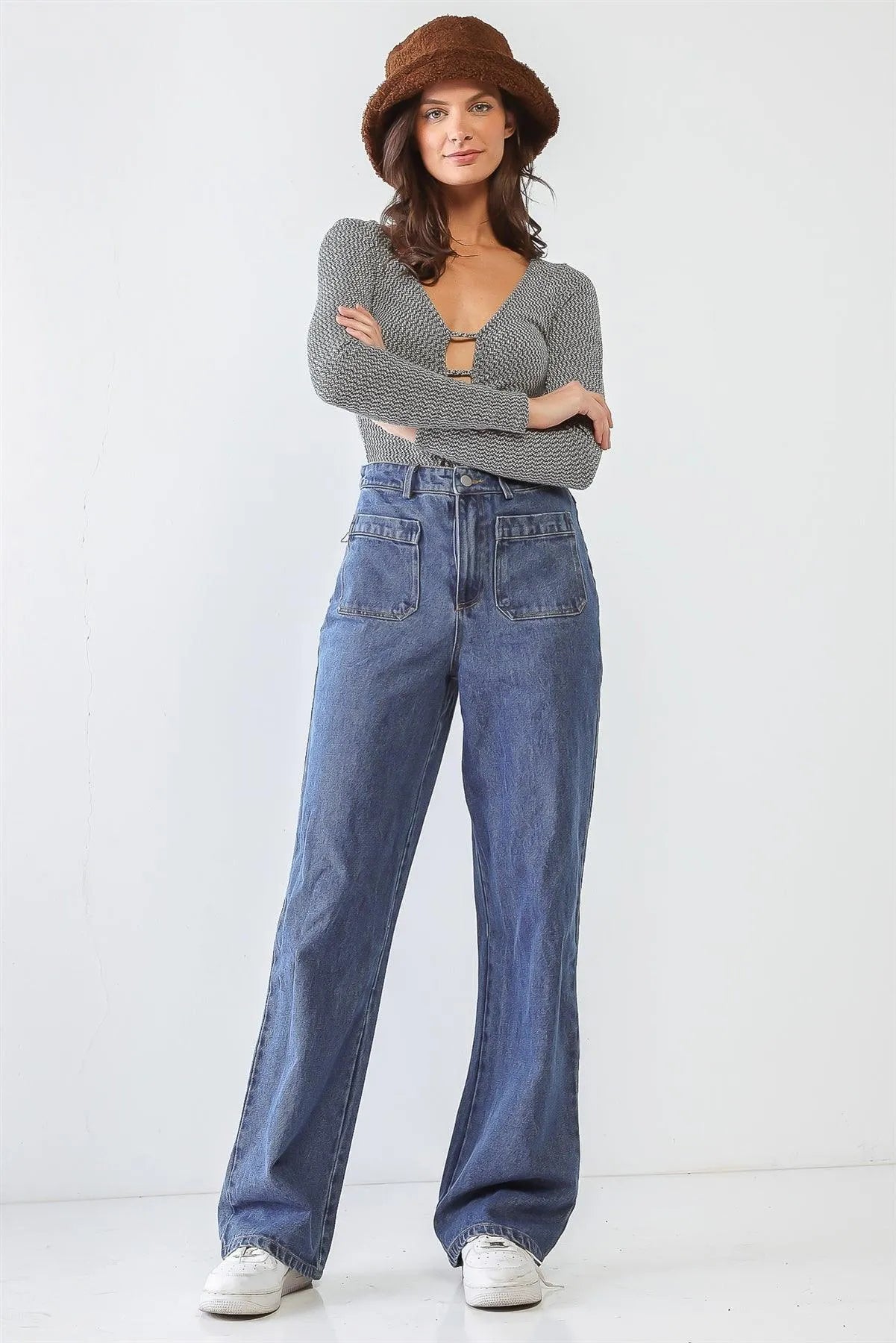 Denim Blue Cotton High Waist Four Pocket Baggy Style Jeans /1-2-2-1
