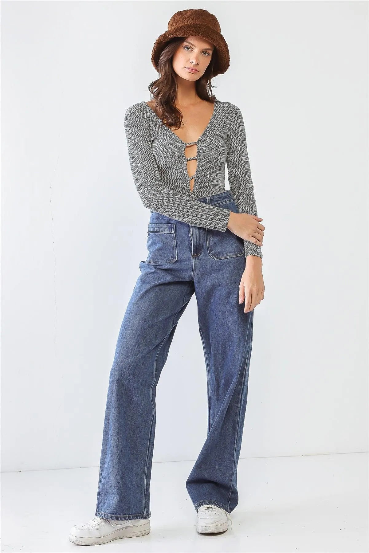 🖤 Item Features: Denim blue, cotton material, baggy style, high waist, five belt loops, front hidden zip-up & button closure, four pockets design, non-stretchy, unlined, non-sheer, casual, cute, lifestyle