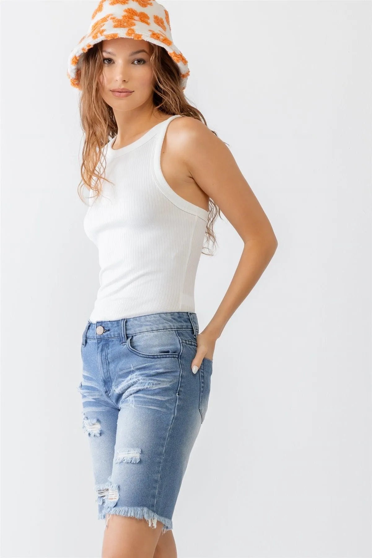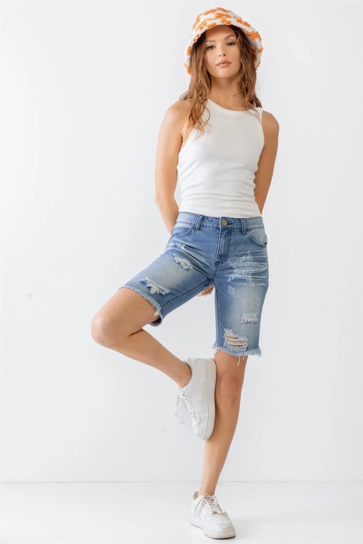 High Waisted Distressed Bermuda Cutout Denim ShortsVendor:Litz La