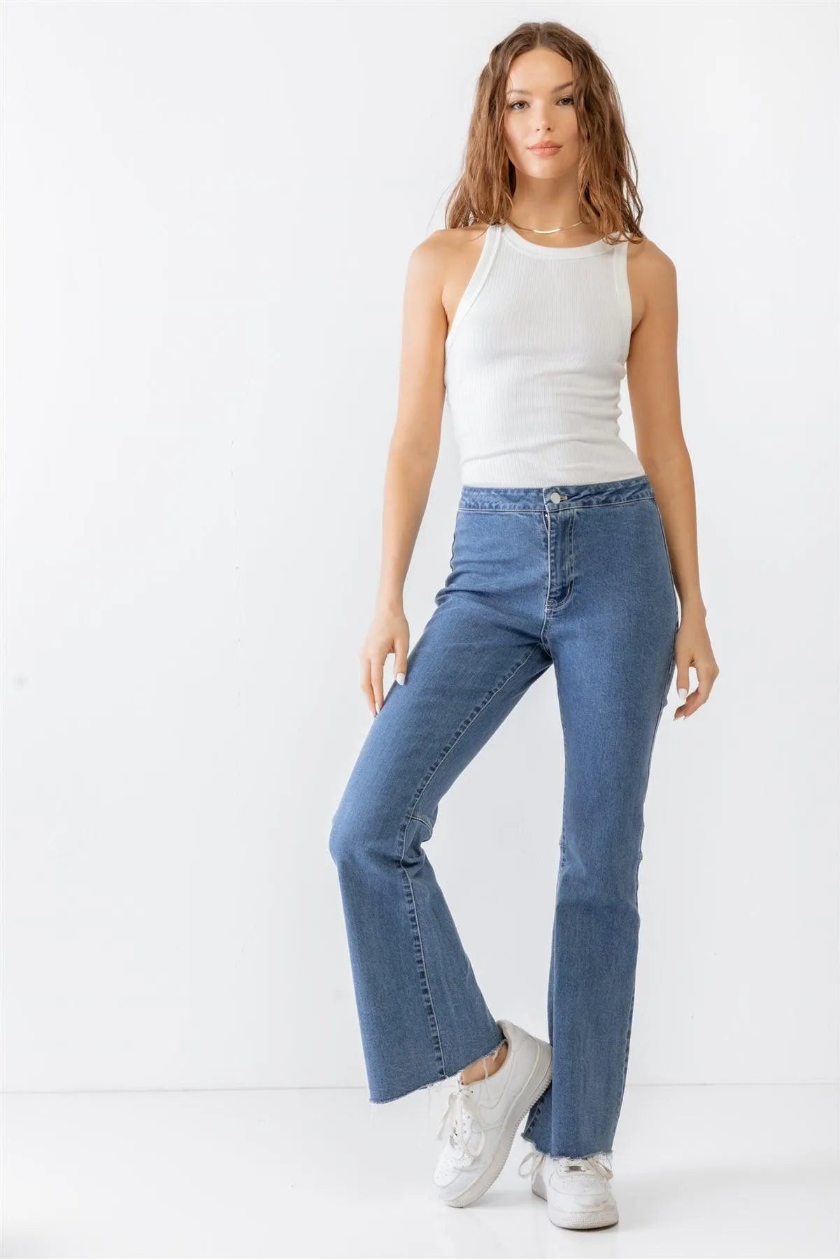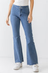 Denim Cotton High Waist Raw Flare Hem Jeans /1-2-2-1