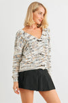 Oversize Cream Leopard and Zebra Patterns Colorblock V Neck SweaterVendor:GILLI