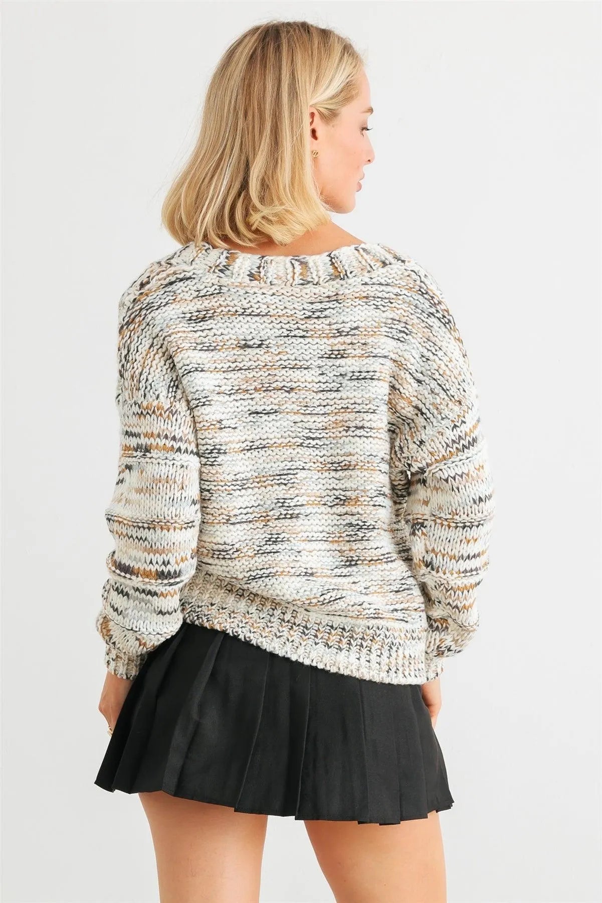 Popcorn Knit Long Sleeve Round Neckline Cozzy SweaterVendor:Blue Buttercup