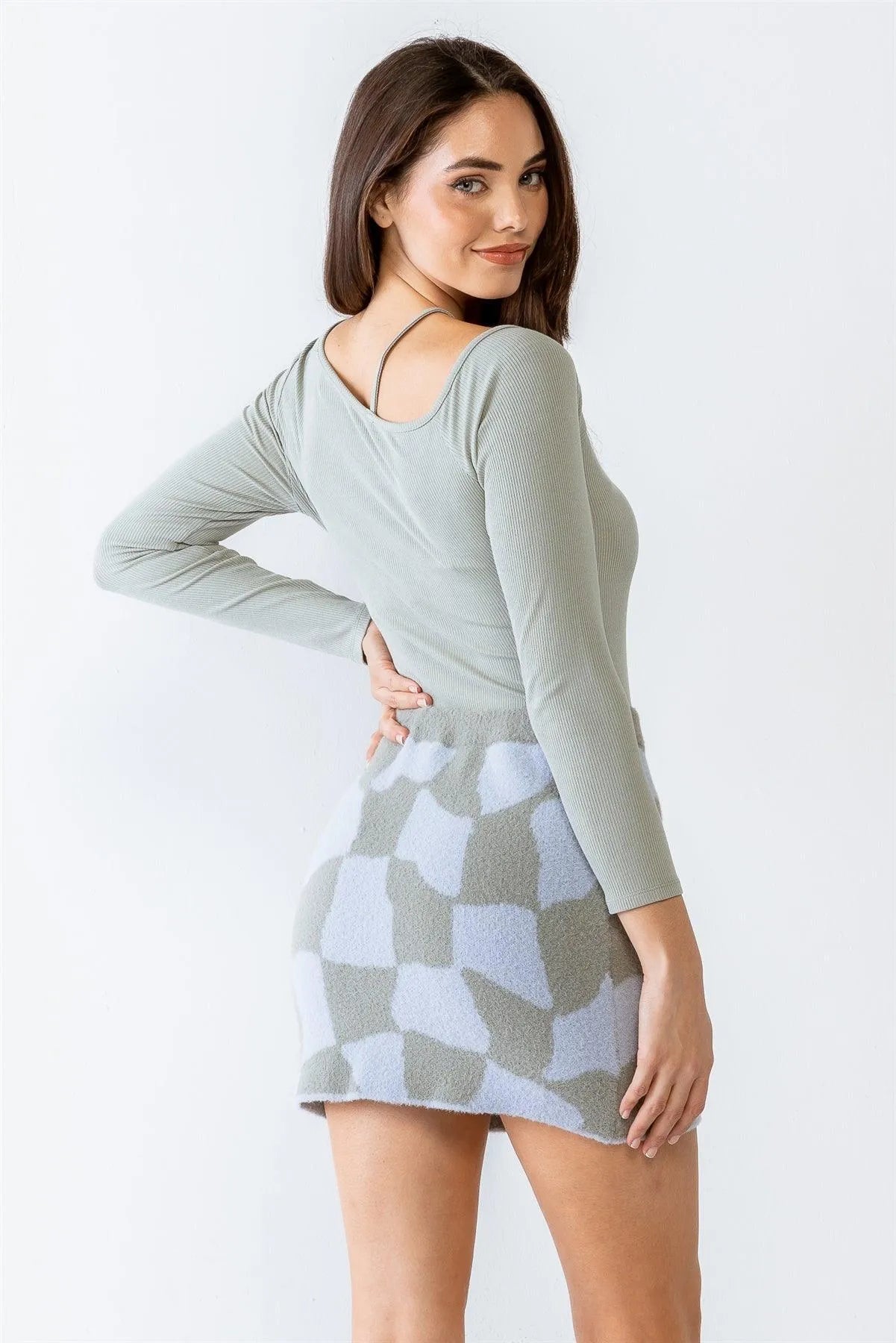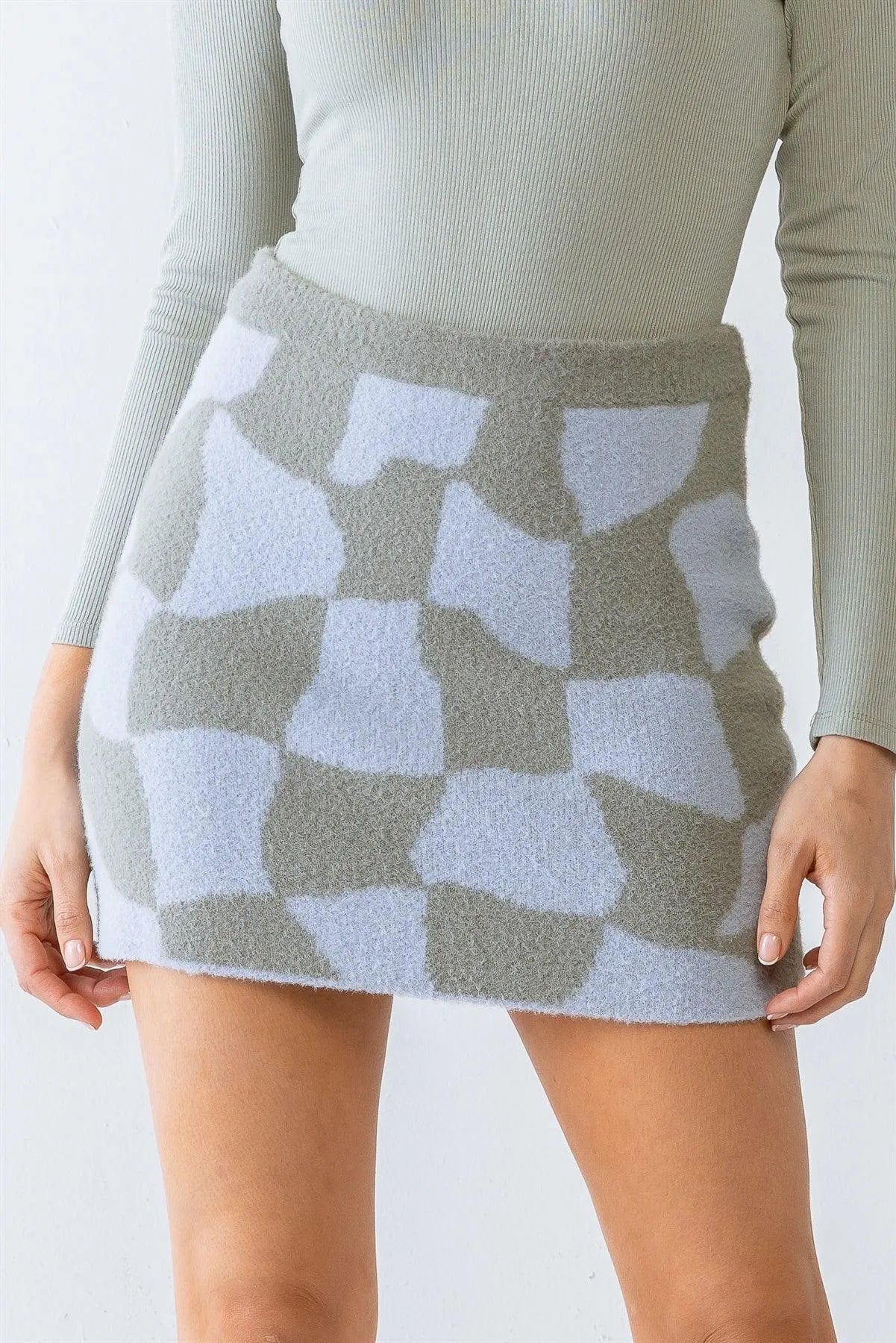 The Dusty Blue & Grey Abstract Plaid Soft-To-Touch High Waist Mini Skirt effortlessly combines style and comfort. This high waist mini skirt features a unique dusty blue and grey abstract plaid pattern, giving it a modern and chic look. Made with soft-to-touch fabric, it offers a comfortable fit and feel. Elevate your wardrobe with this must-have piece.