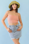 Dusty Peach Knit Strapless Crop Top /3-2-1