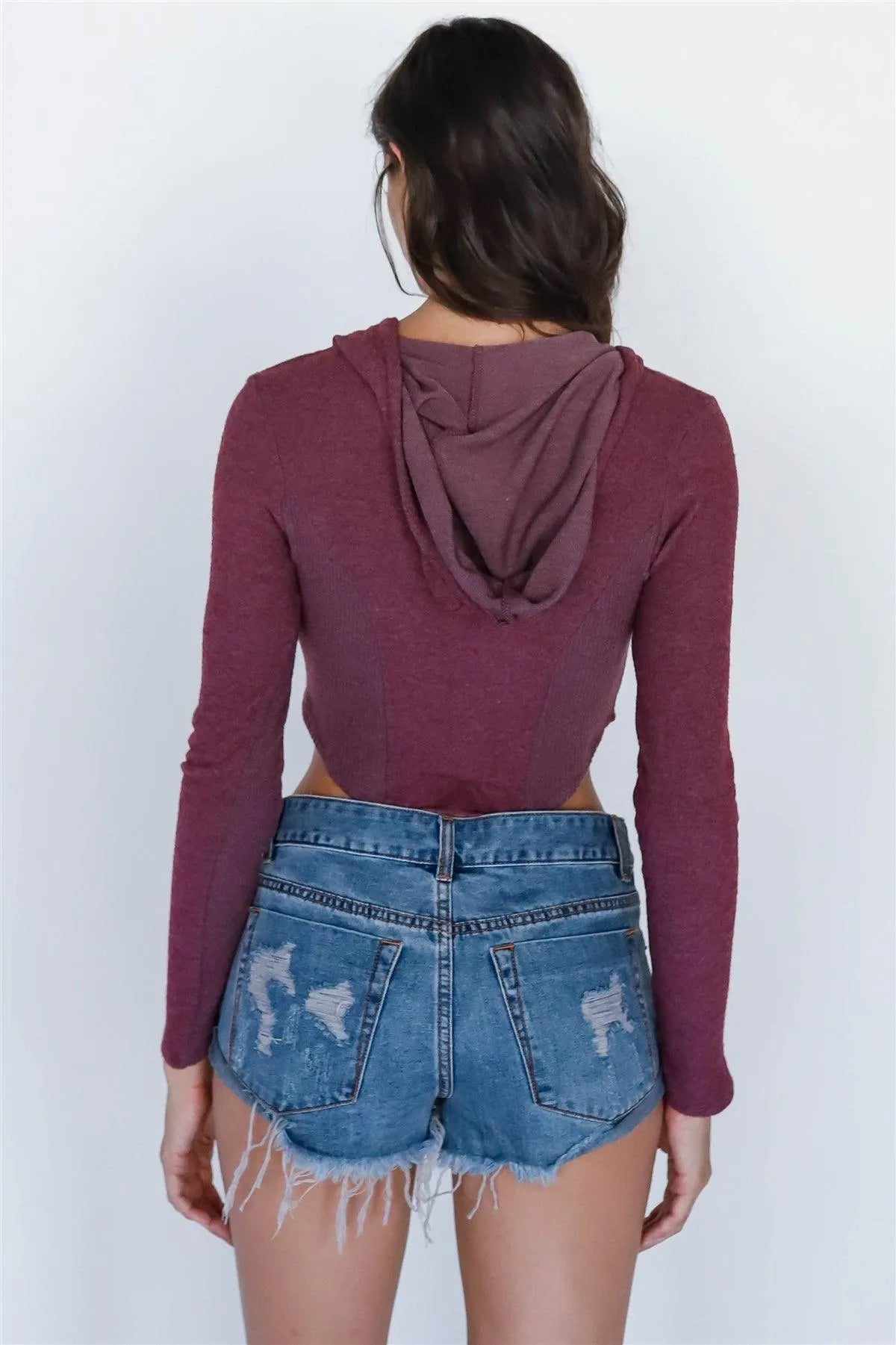 🖤 Item features: Eggplant, flannel material, hood with adjustable drawstring, front zip-up closure, long sleeves, ribbed side details, cropped length, soft to touch, unlined, not see through, non-stretchy, cute, elegant, chic, trendy, stylish, must-have