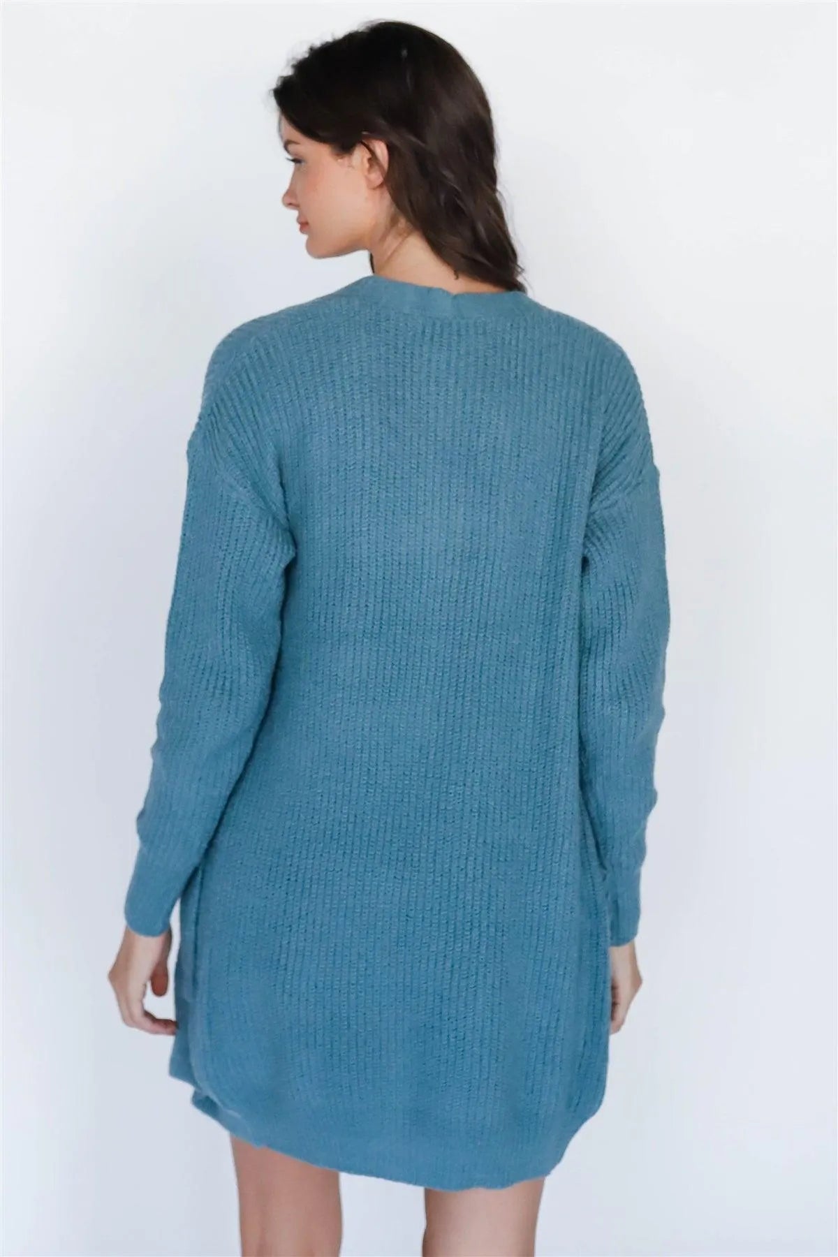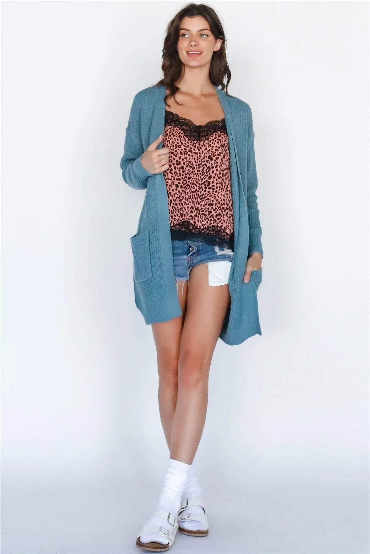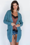 Emerald Blue Knit Open Front Two Pocket Cardigan /2-2-2