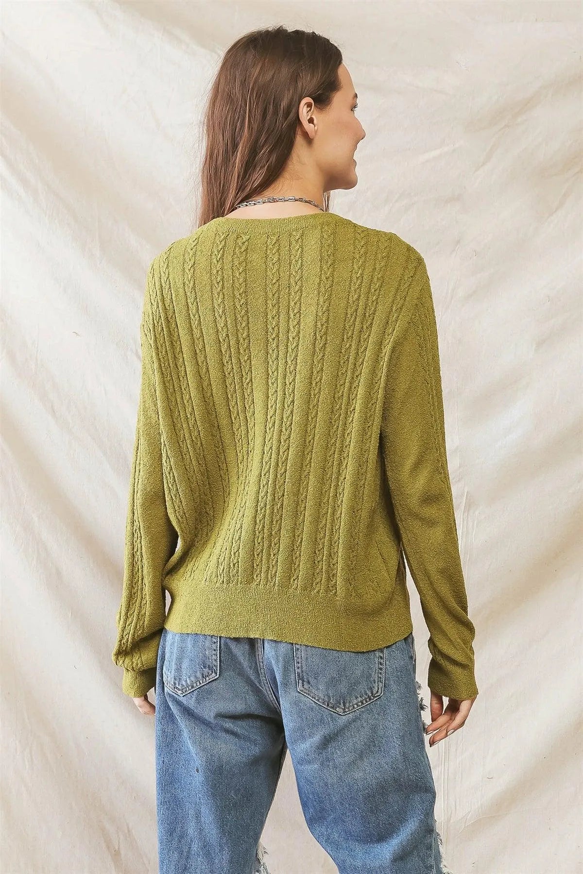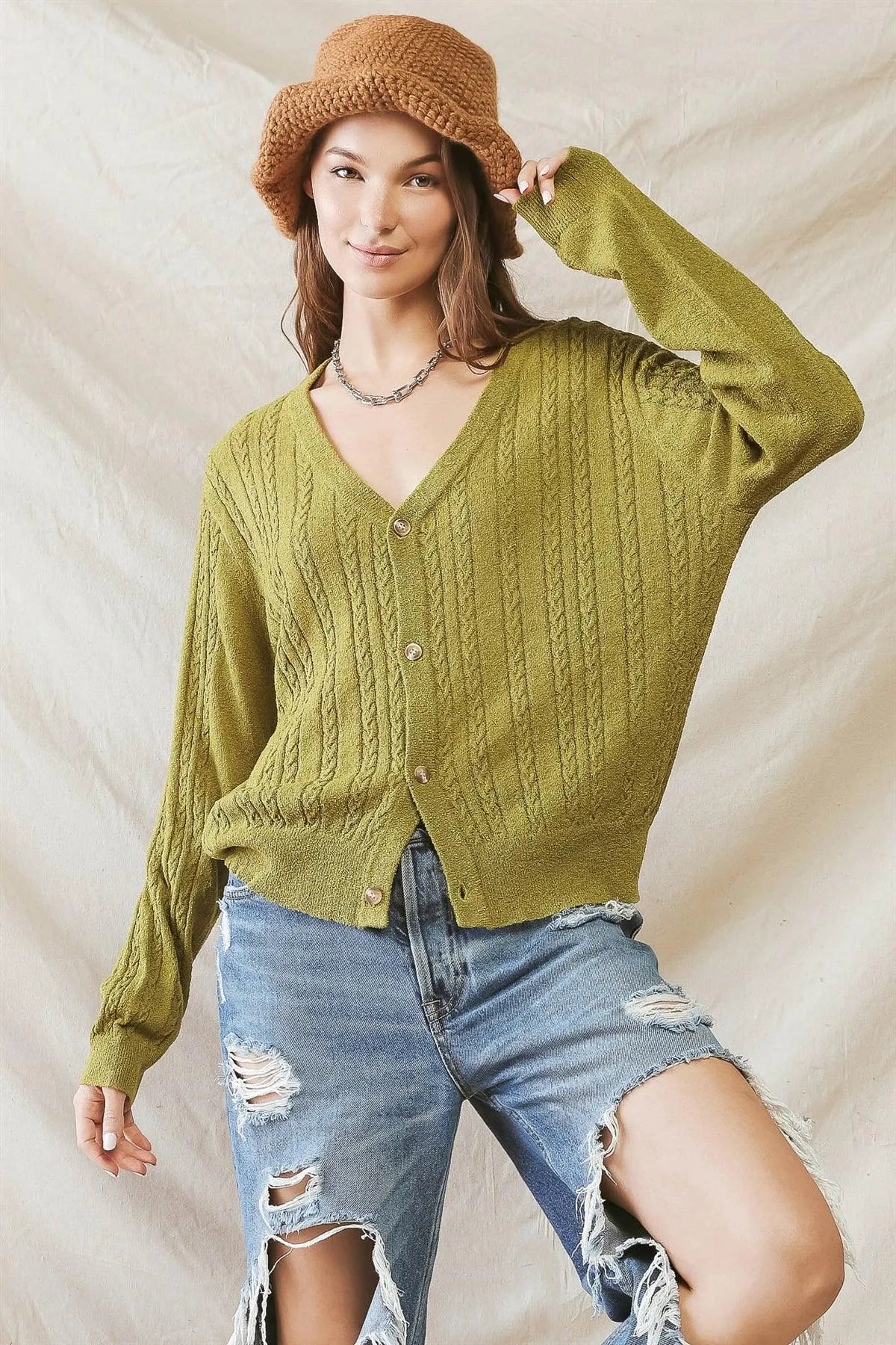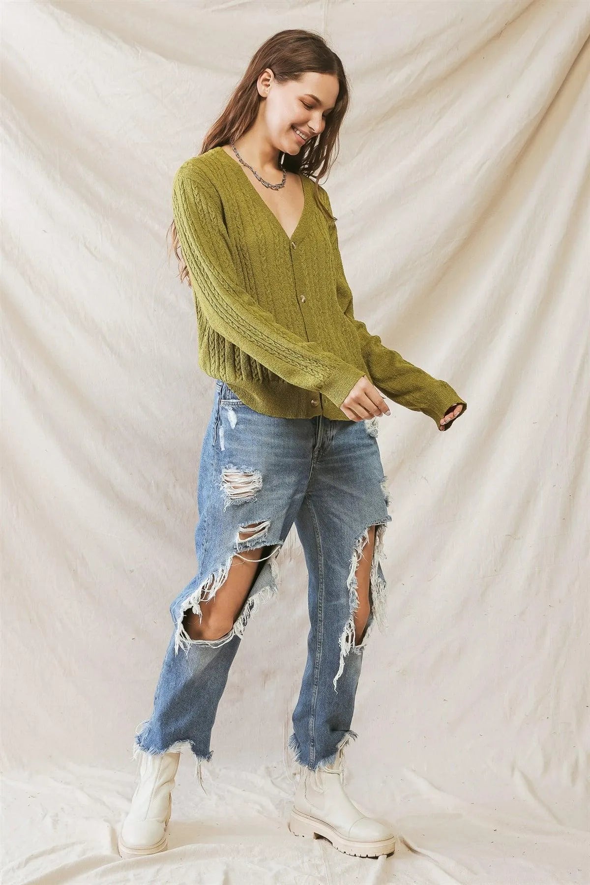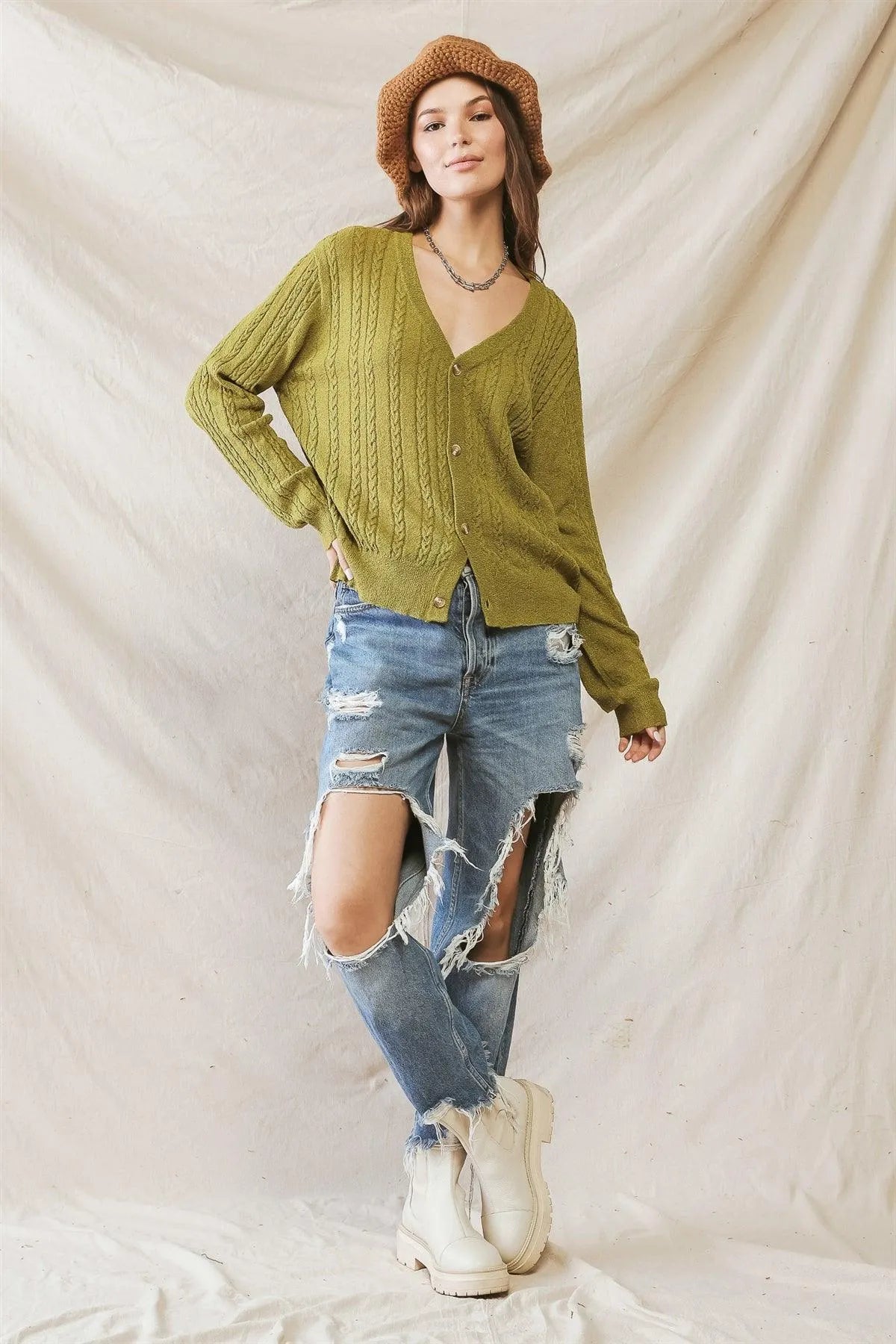 Farm Cable Knit Button-Up Long Sleeve Cardigan Sweater /3-2-1