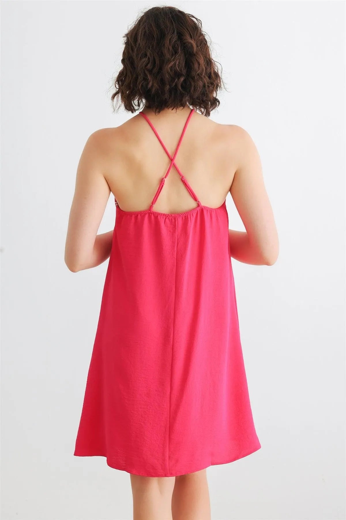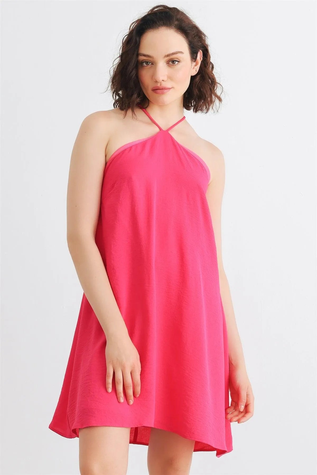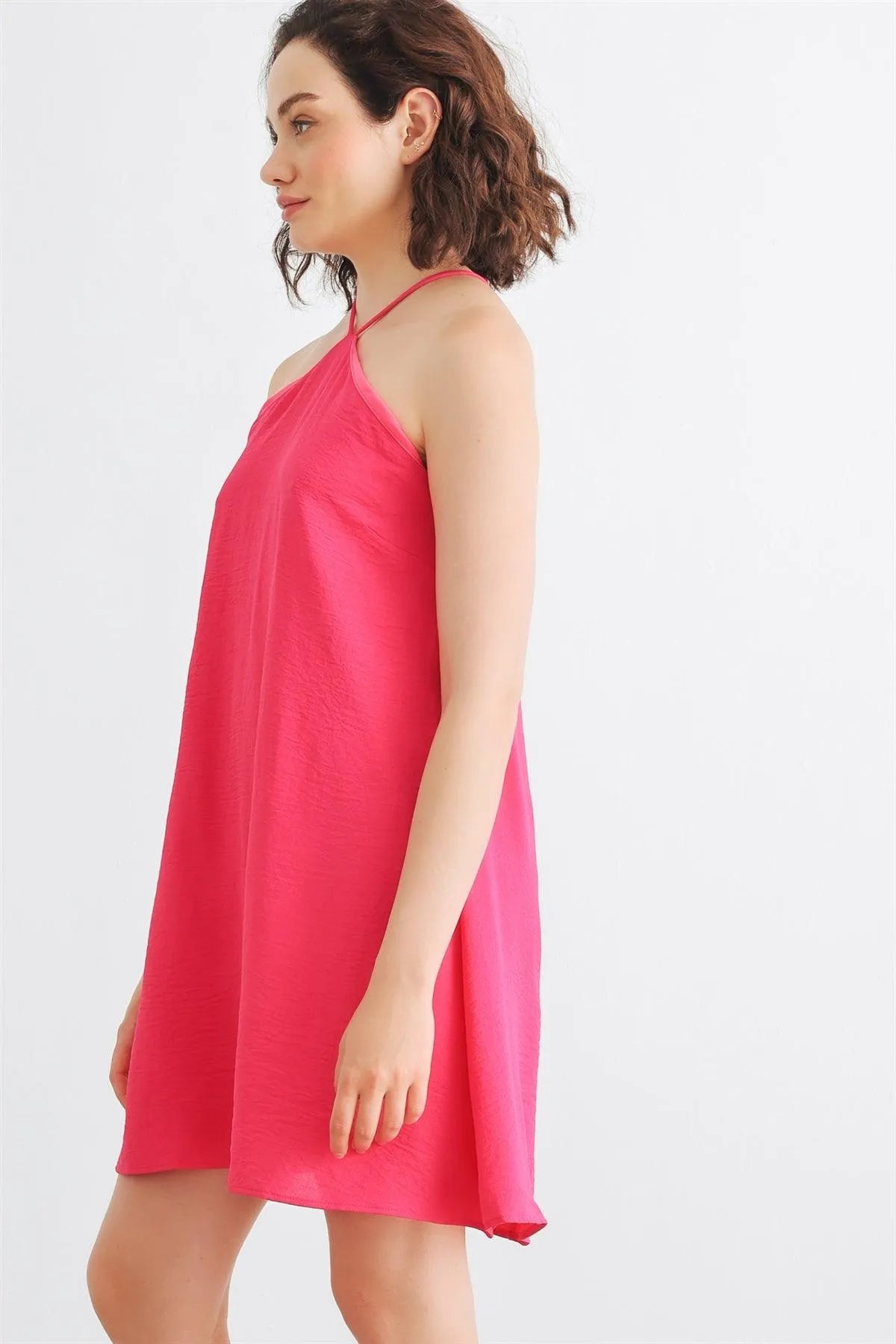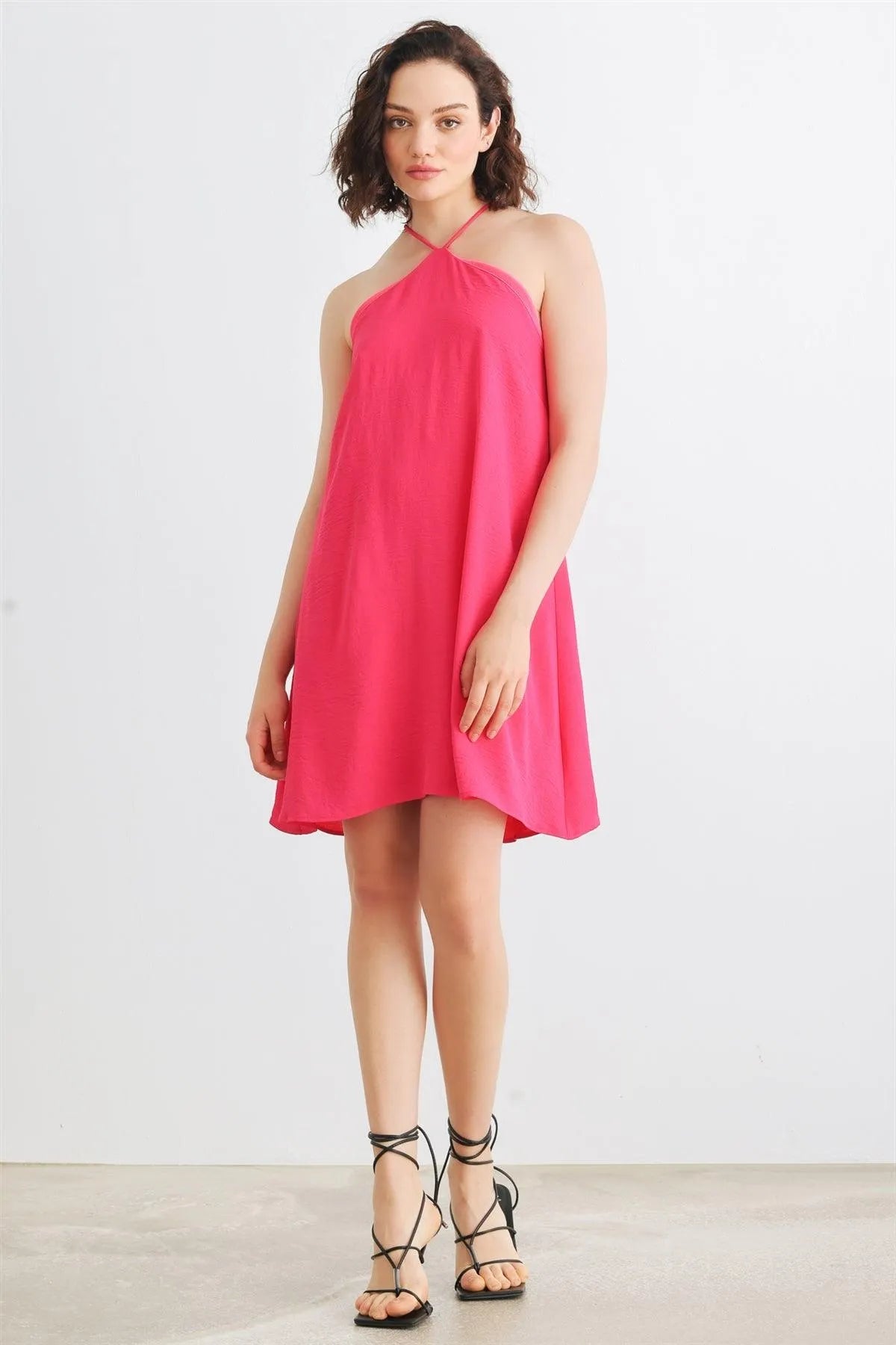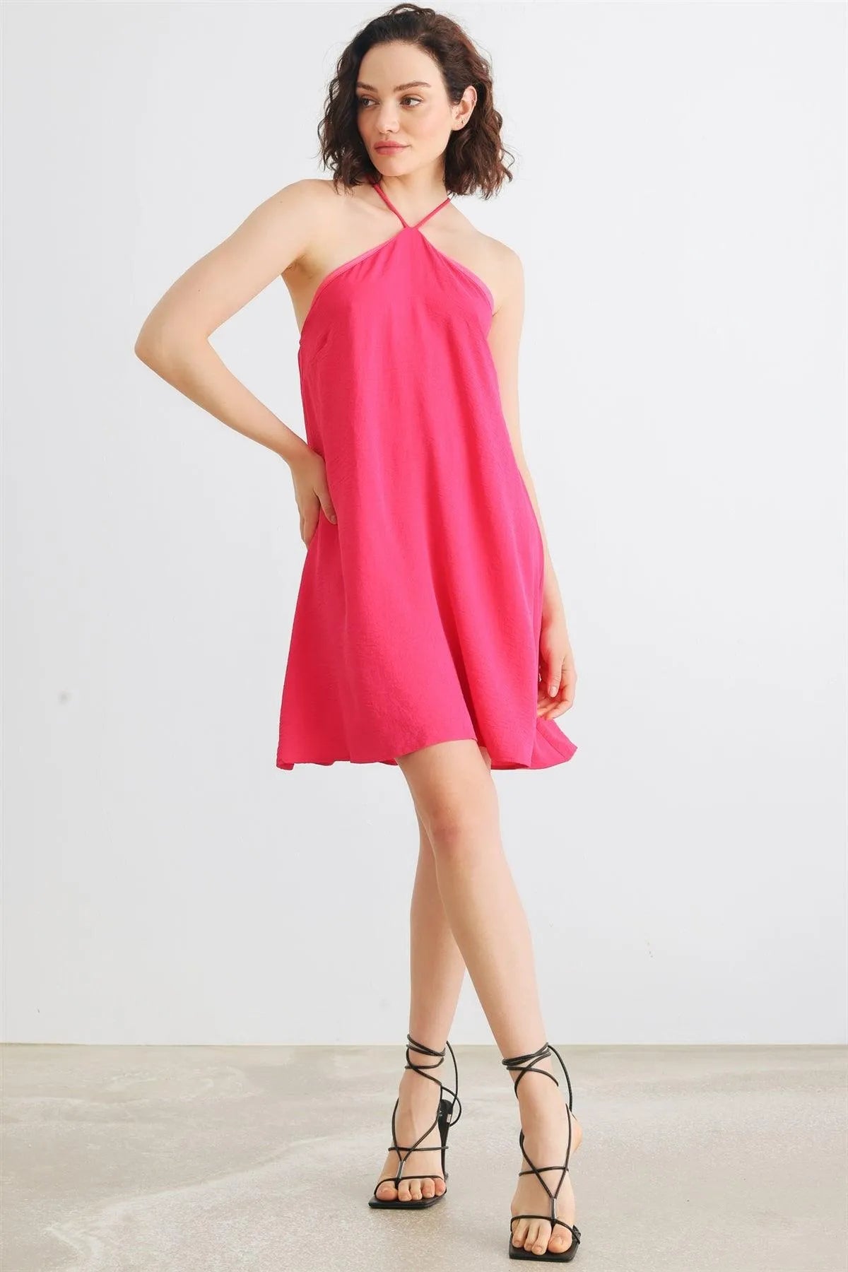 Fuchsia Sleeveless Halter Neck Criss-Cross Back Mini Dress /2-2-2