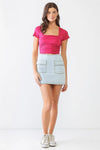 Fuchsia Ruched Short Sleeve Square Neck Crop Top /3-2-1