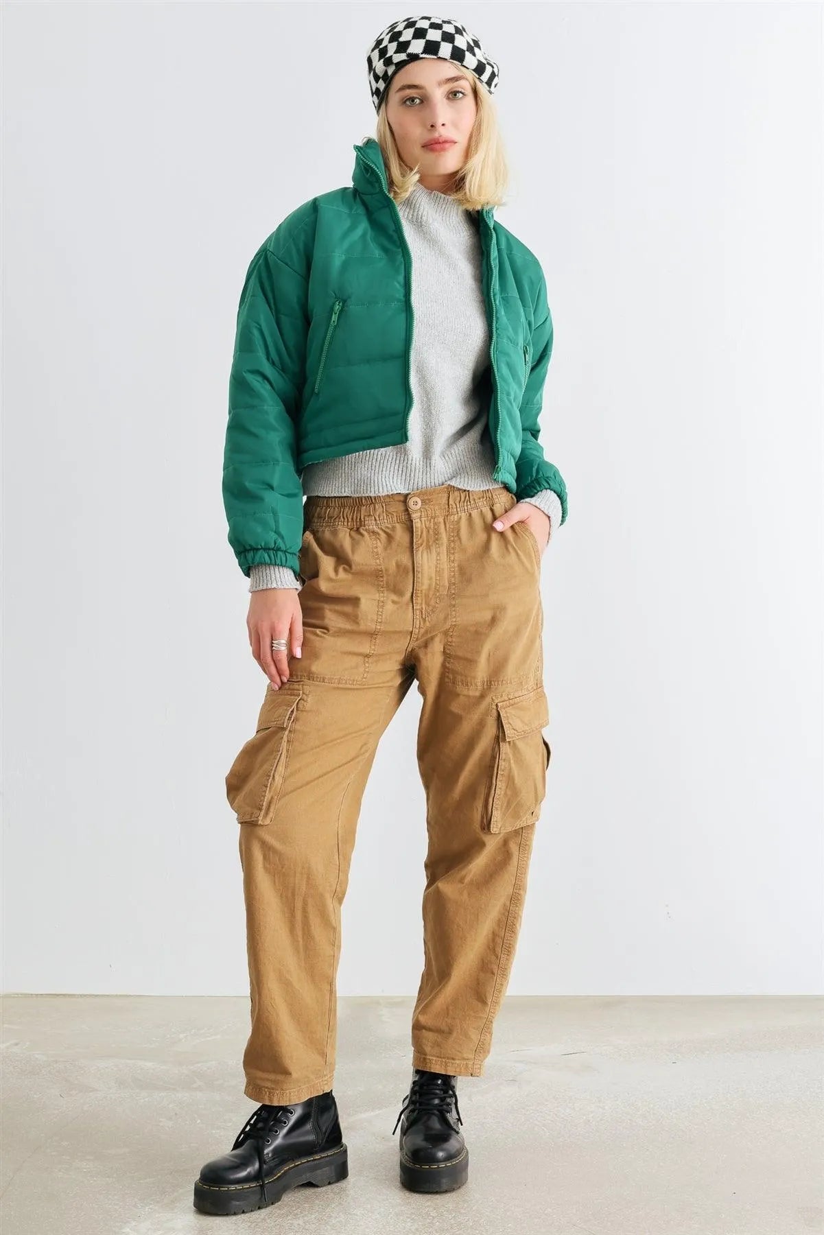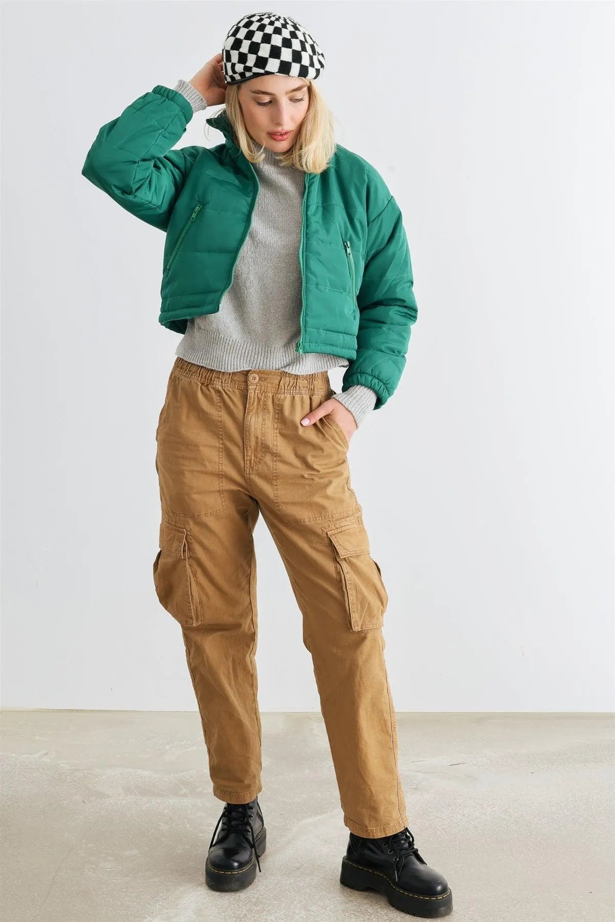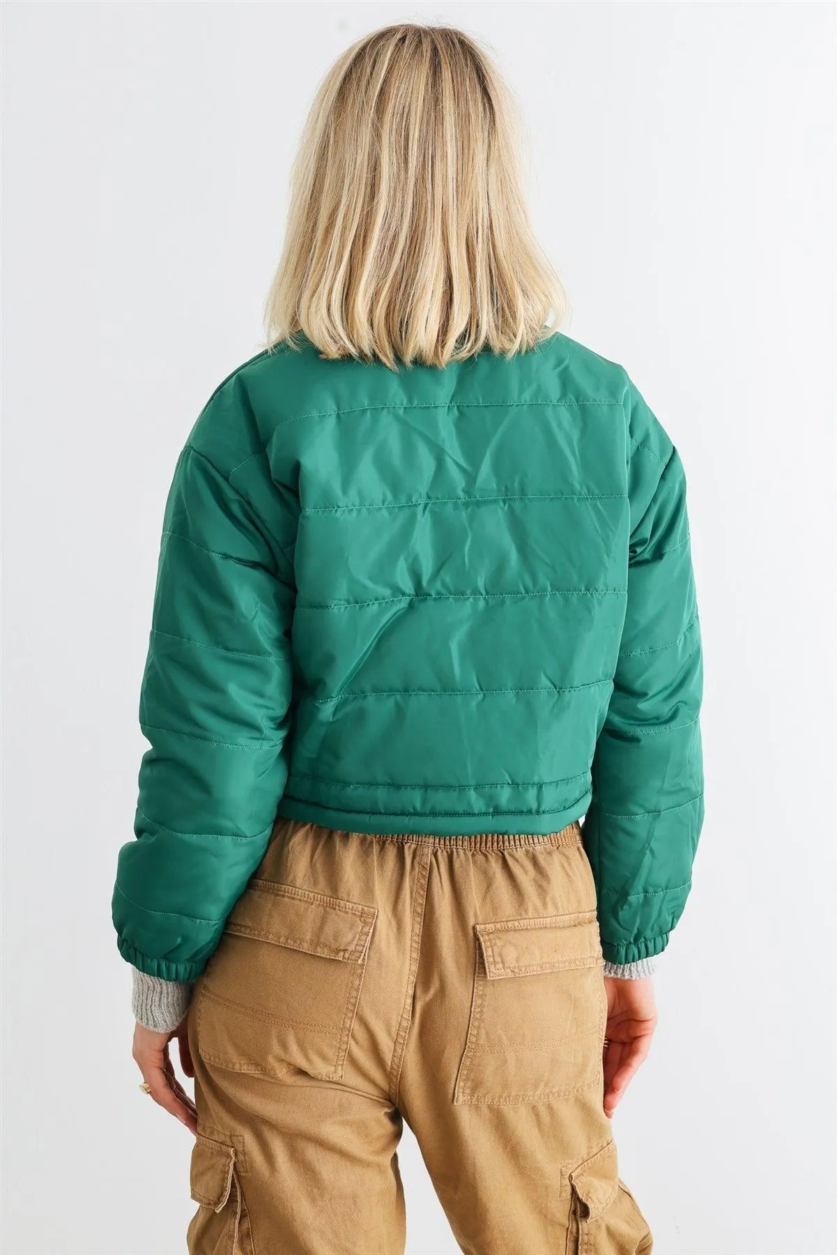 Green Puffer Zip-Up Two Pocket Cropped Jacket /1-2-2-1