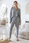 Stone French Terry Wide Leg Elastic Waist Relaxed Lounge PantsVendor:White Birch