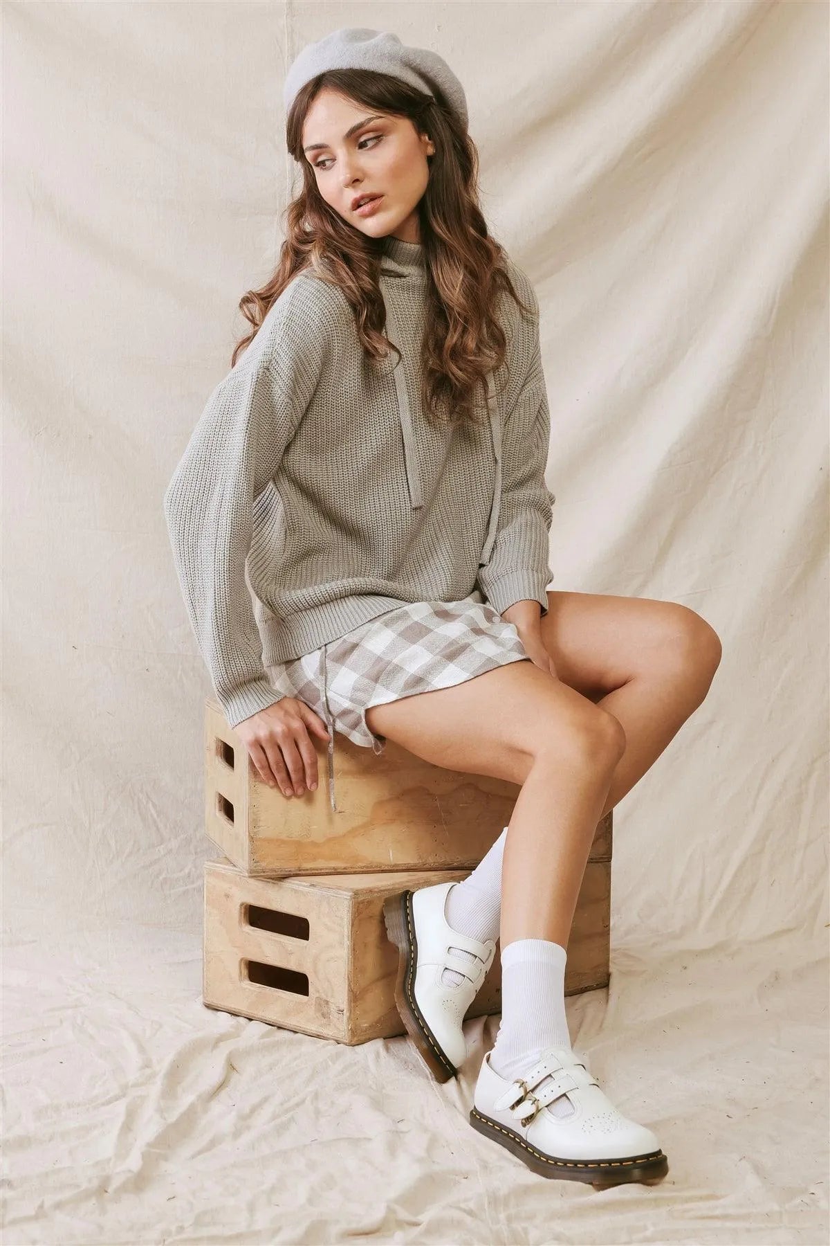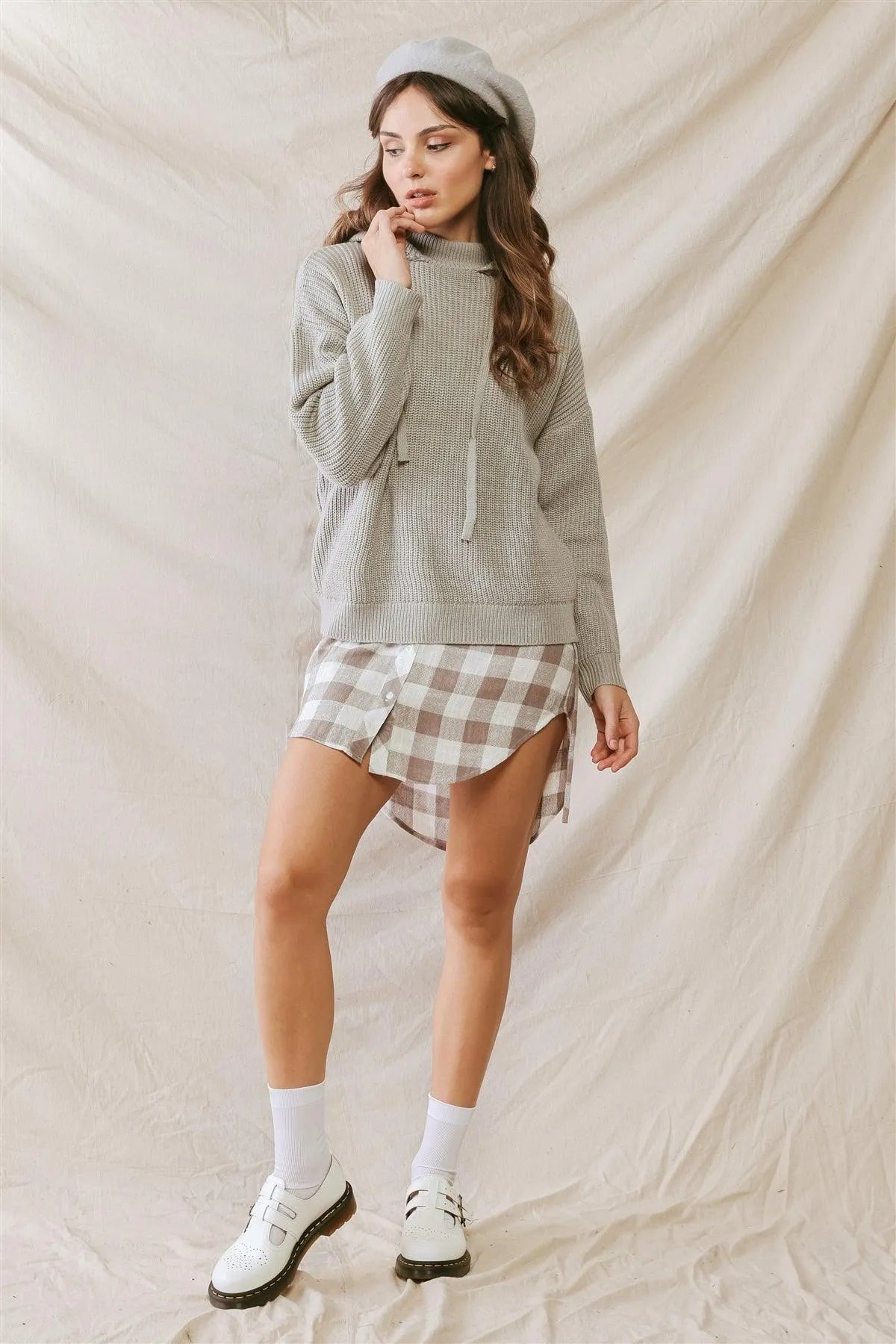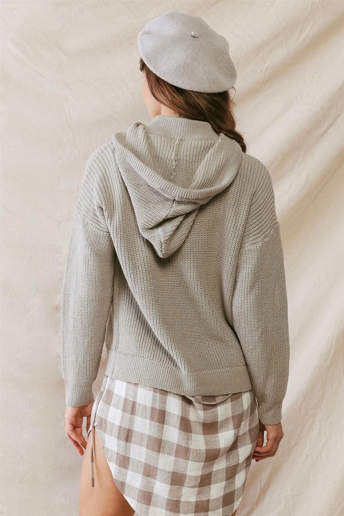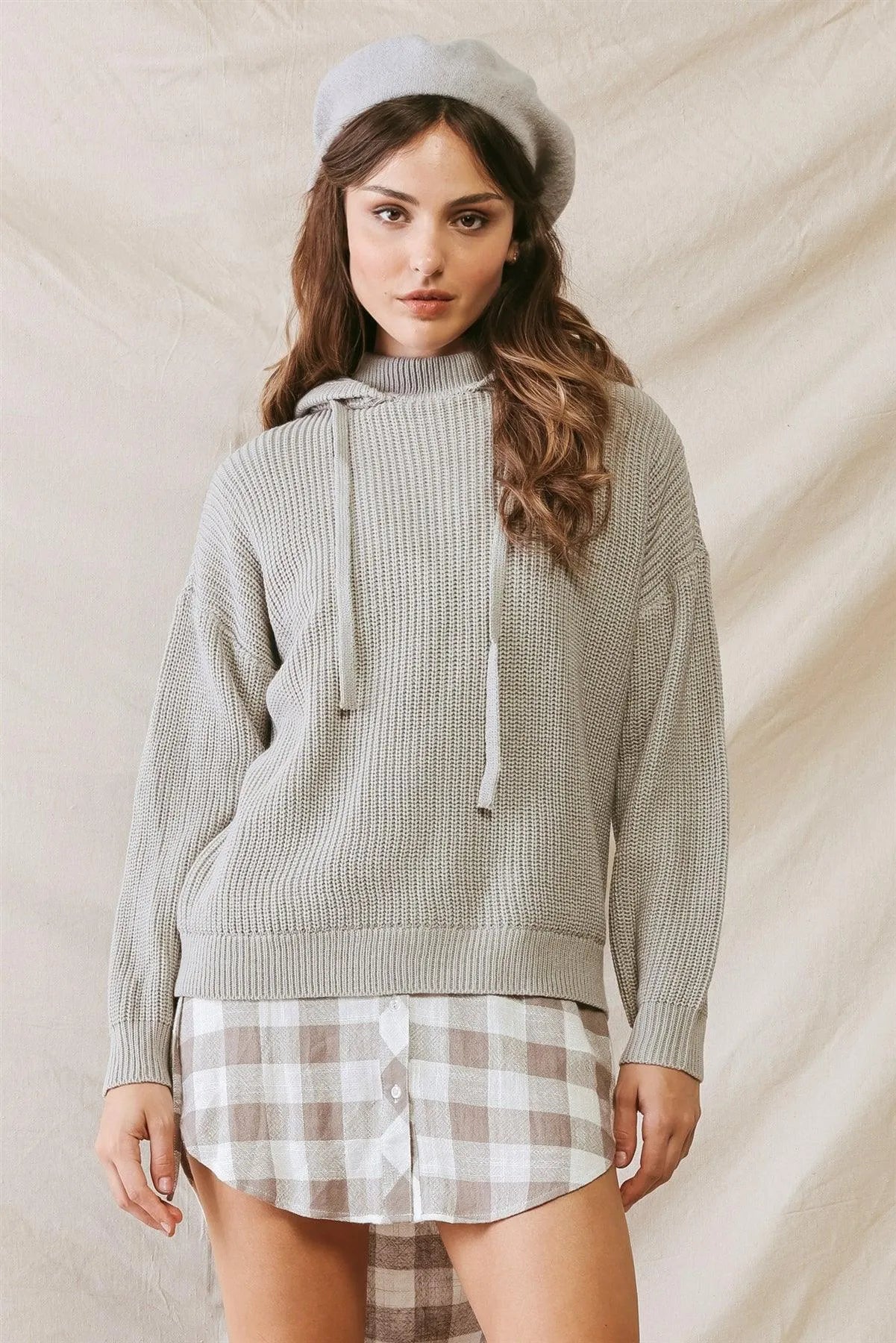 Heather Grey Knit Hooded Long Sleeve Relaxed Sweater /2-2-2