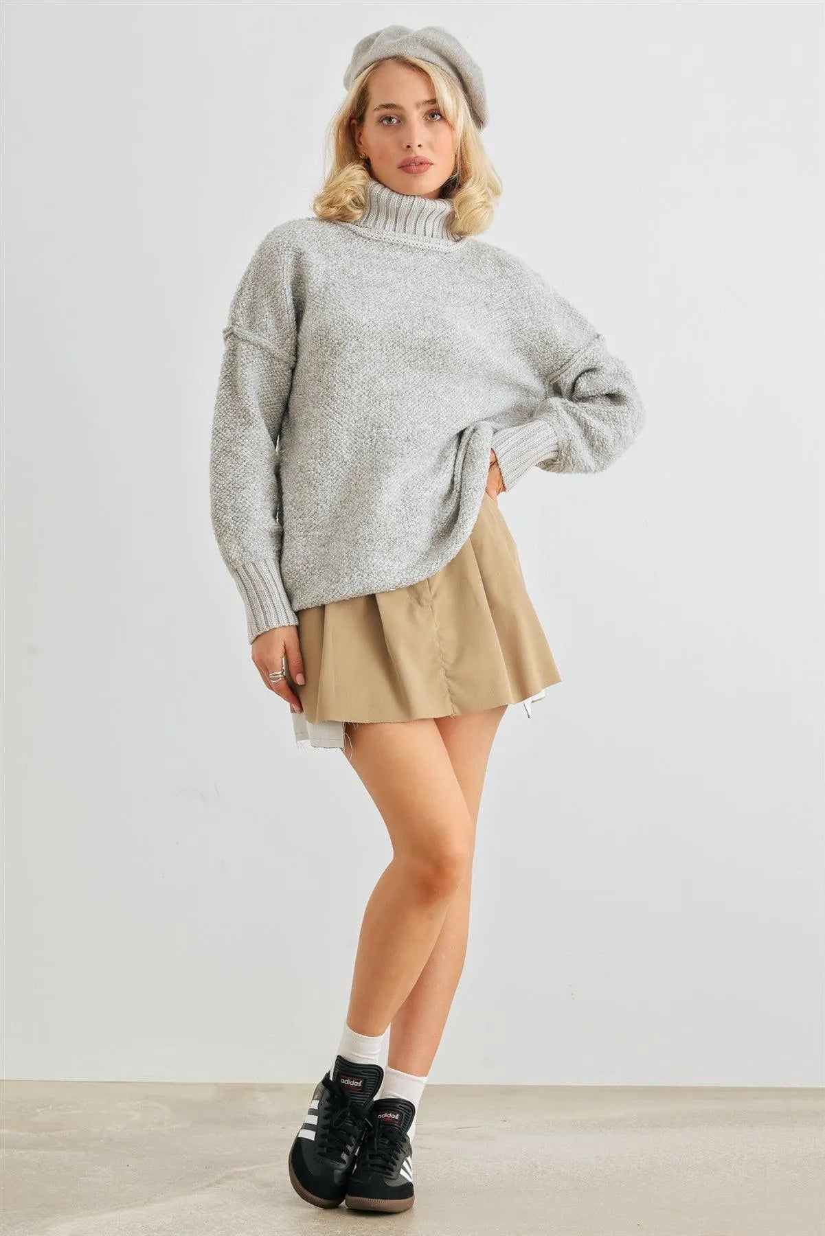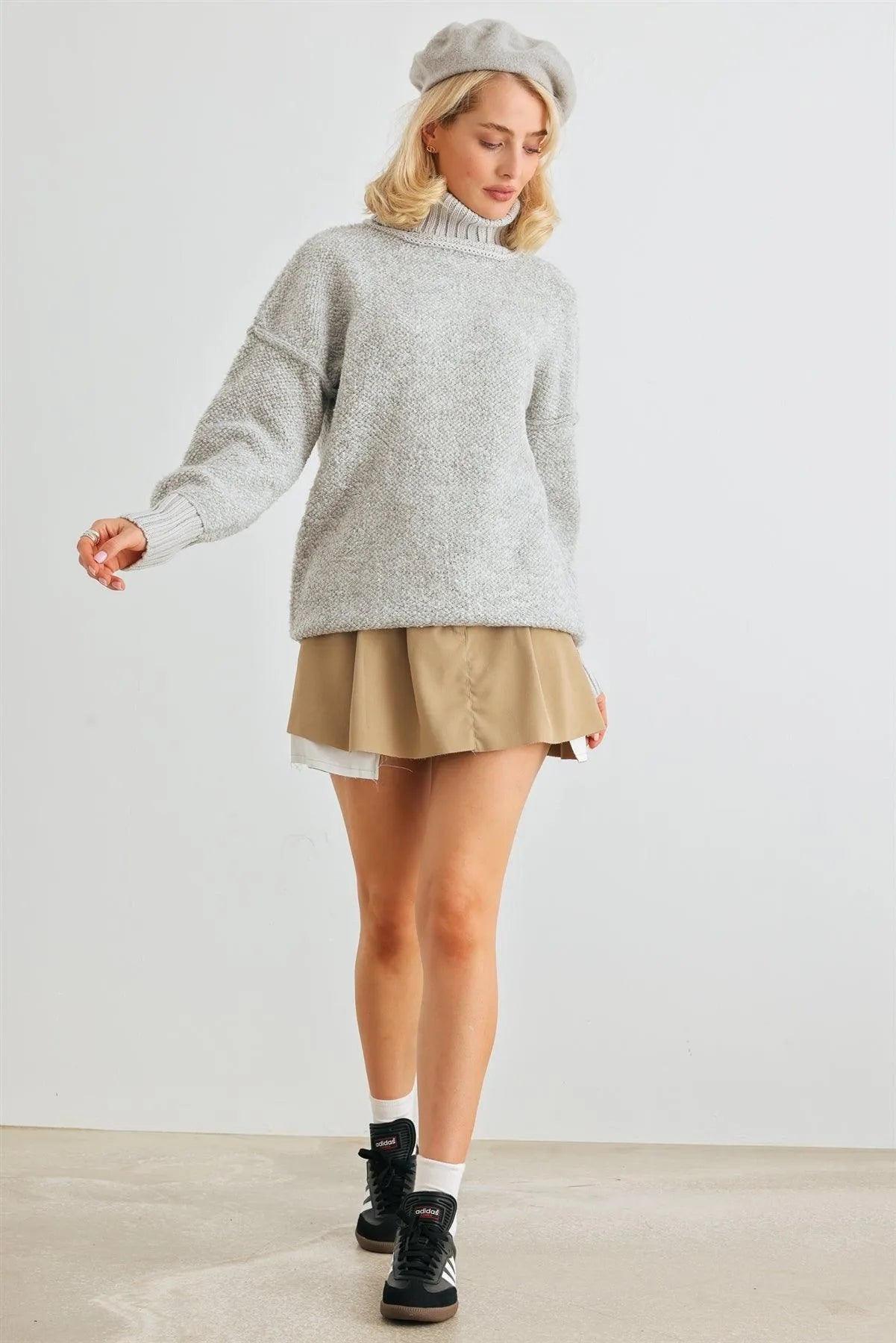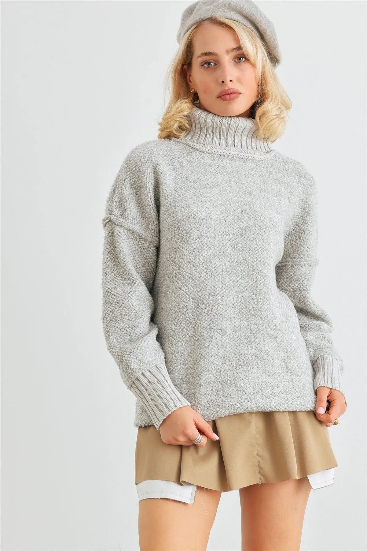 Heather Grey Knit Turtle Neck Long Sleeve Sweater /2-2-3