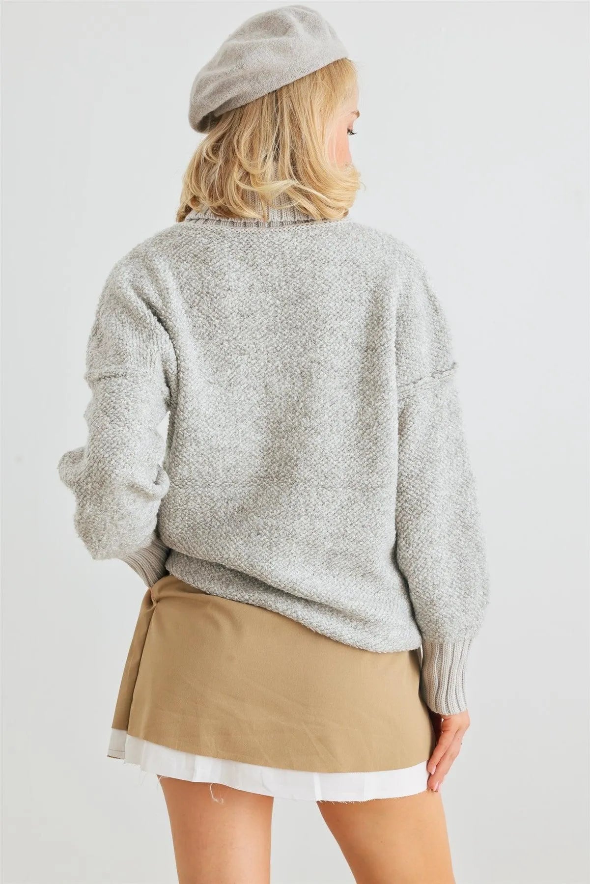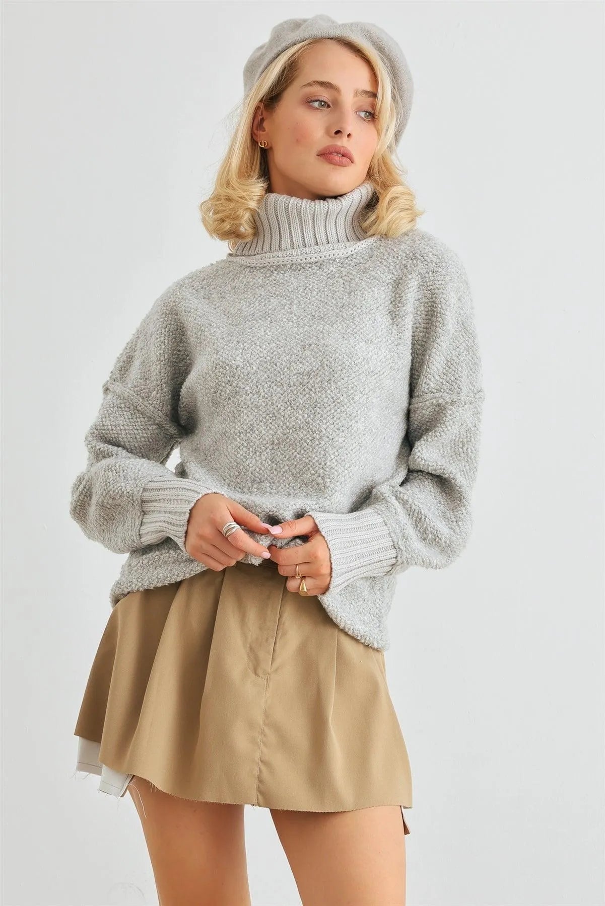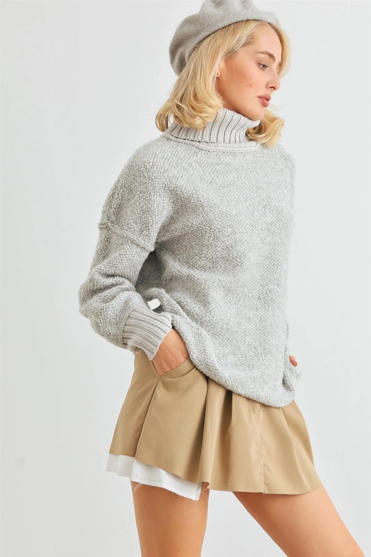 Heather Grey Knit Turtle Neck Long Sleeve Sweater /2-2-3
