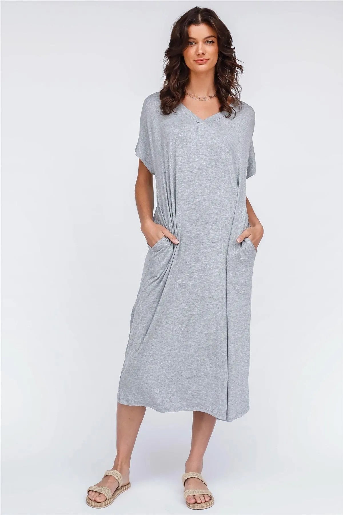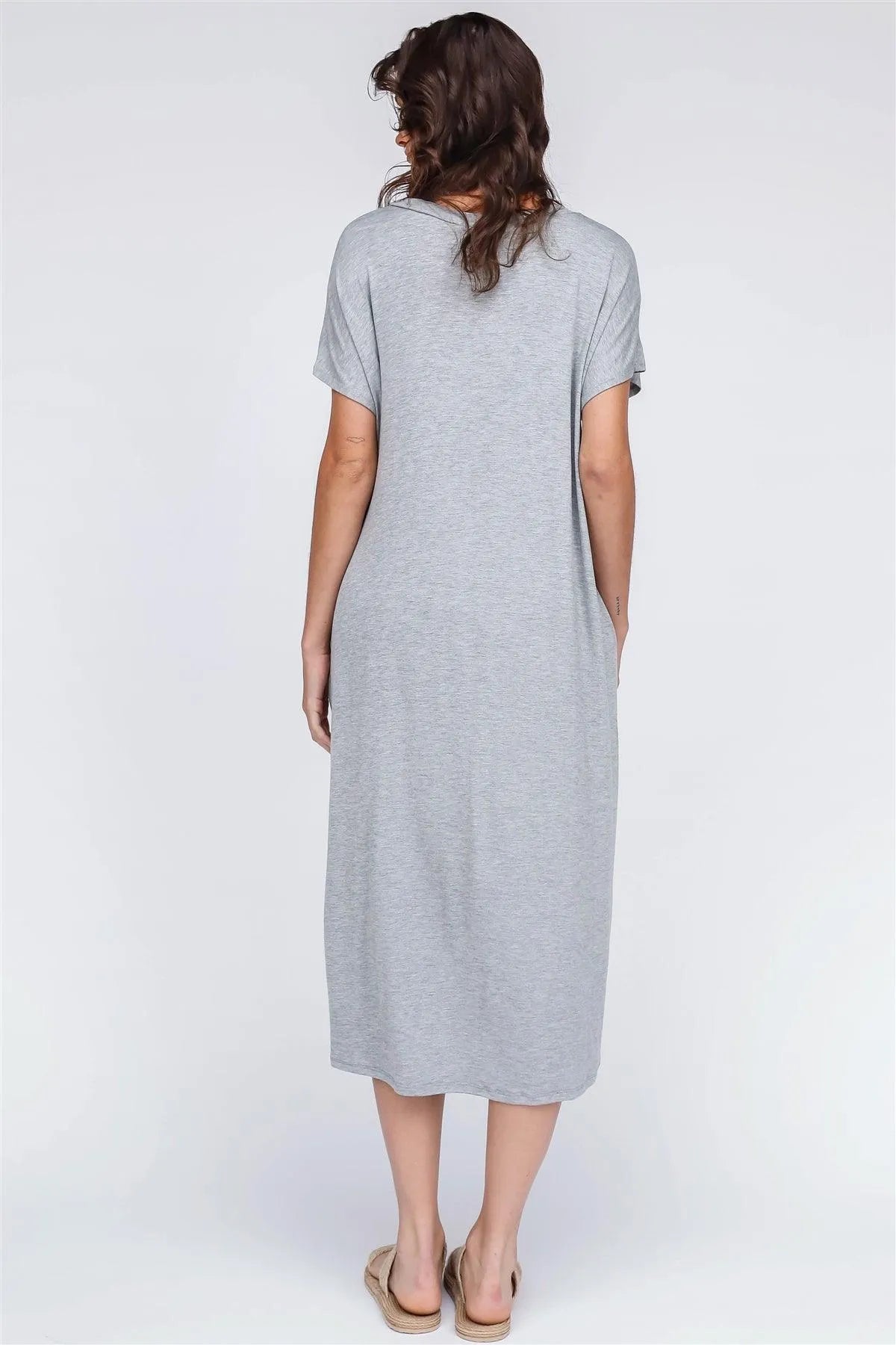 Heather Grey V-Neck Short Sleeve Midi Dress