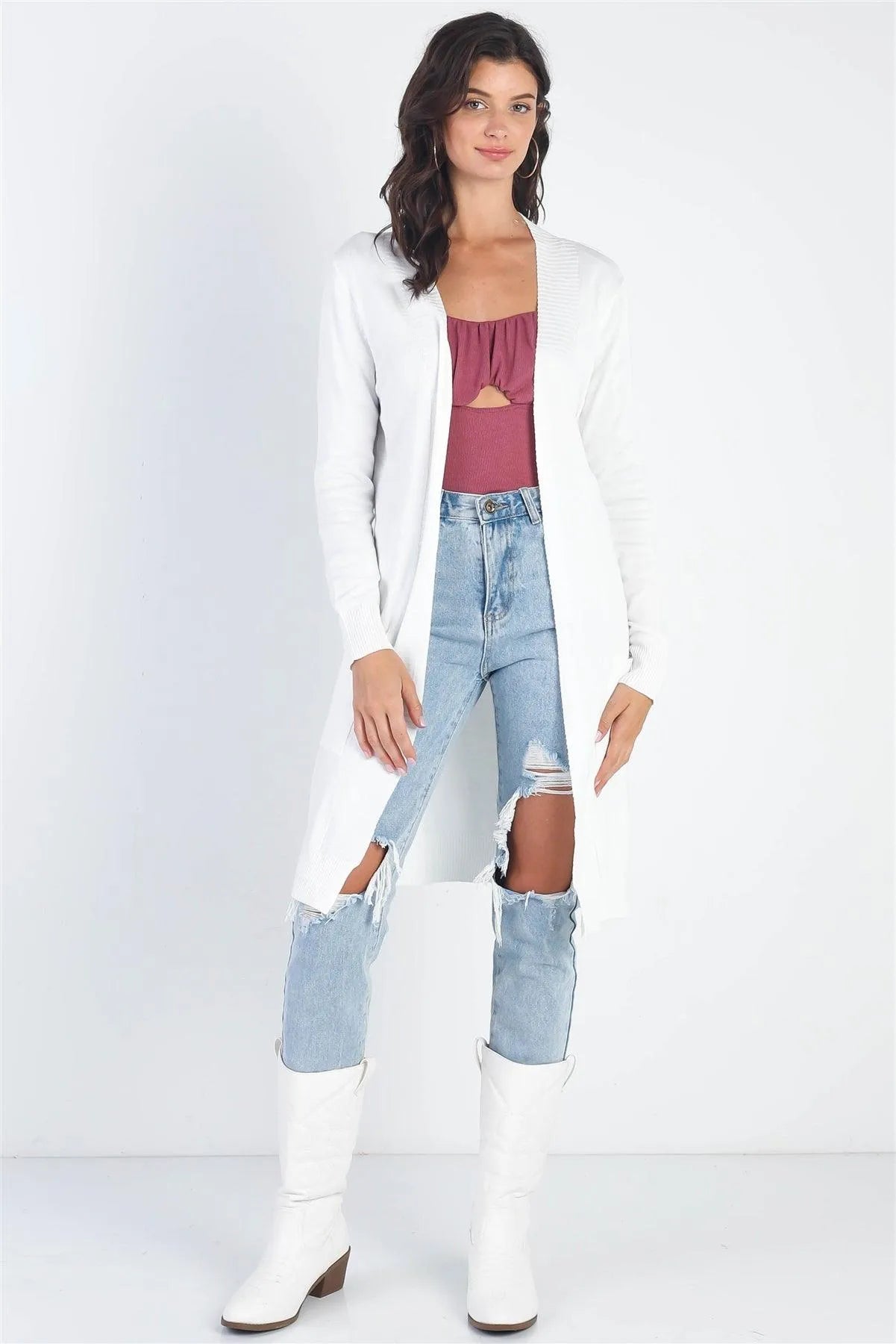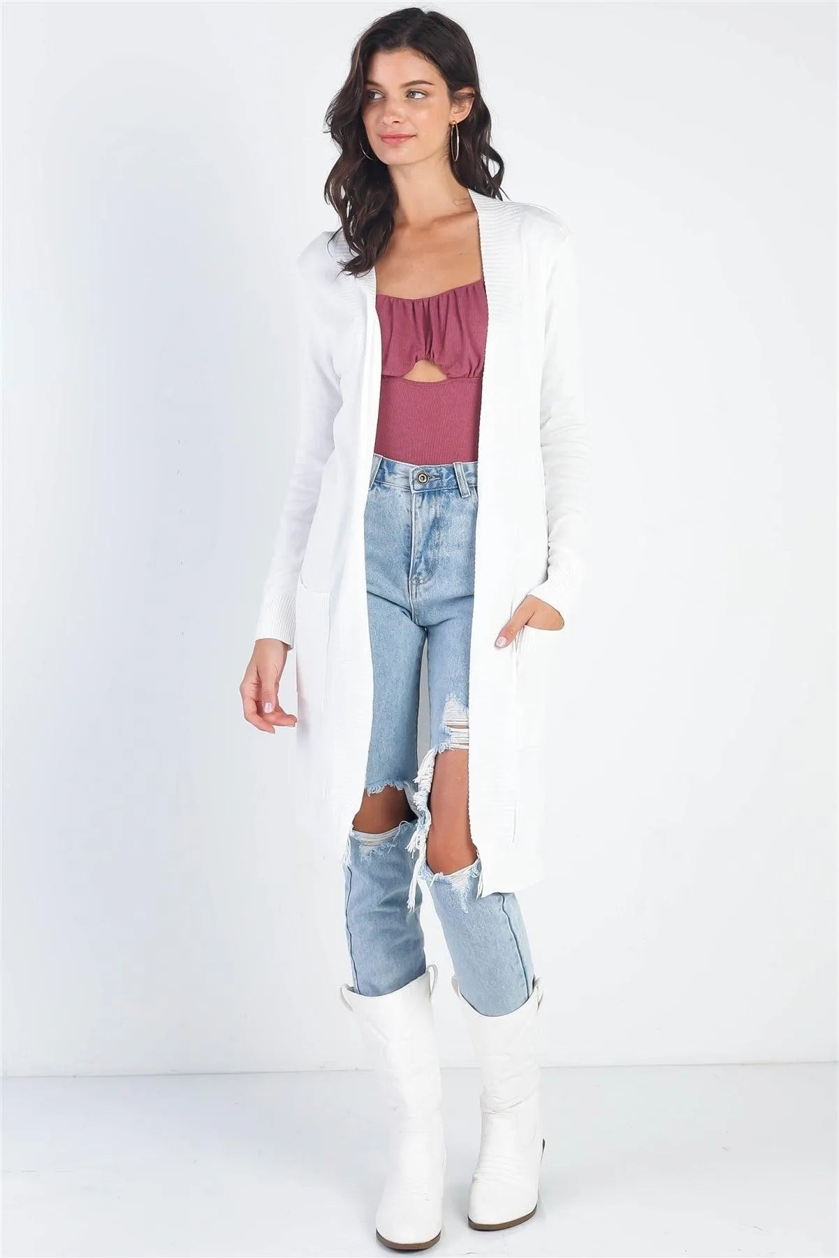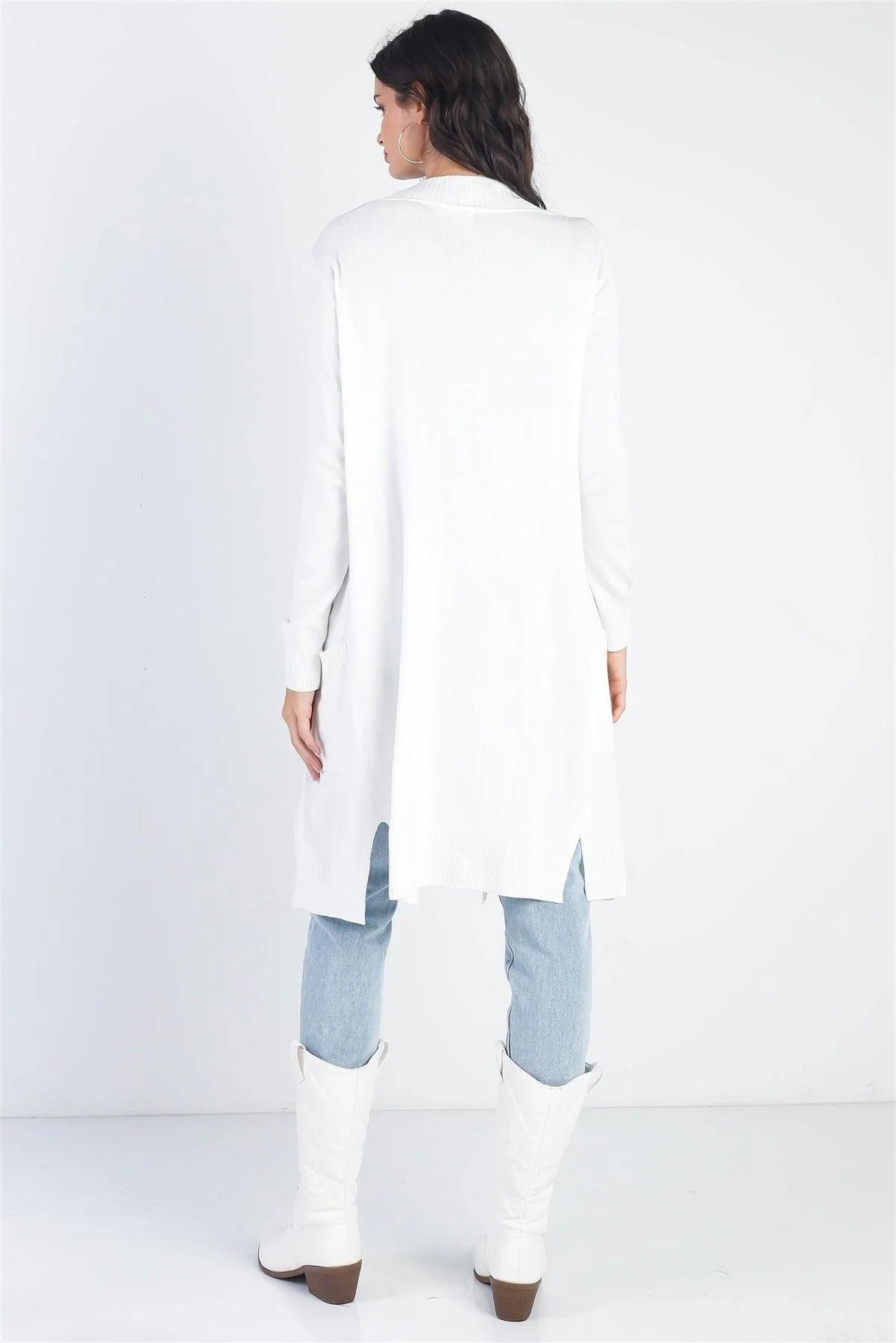 🖤 Item Features: Ivory, cotton & viscose blend, open front, cuffed hem & long sleeves, two pockets, side slit details, relaxed fit, non-sheer, non-stretchy, unlined, comfy, casual, chic, basic, fall/winter collection, boho style, must-have, eye-catching